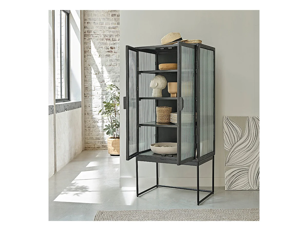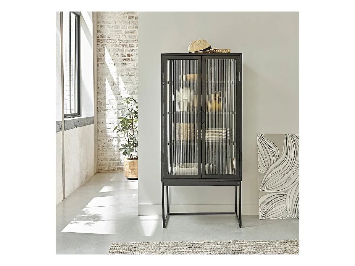 Aparador alto de metal y vidrio ondulado 70 cm