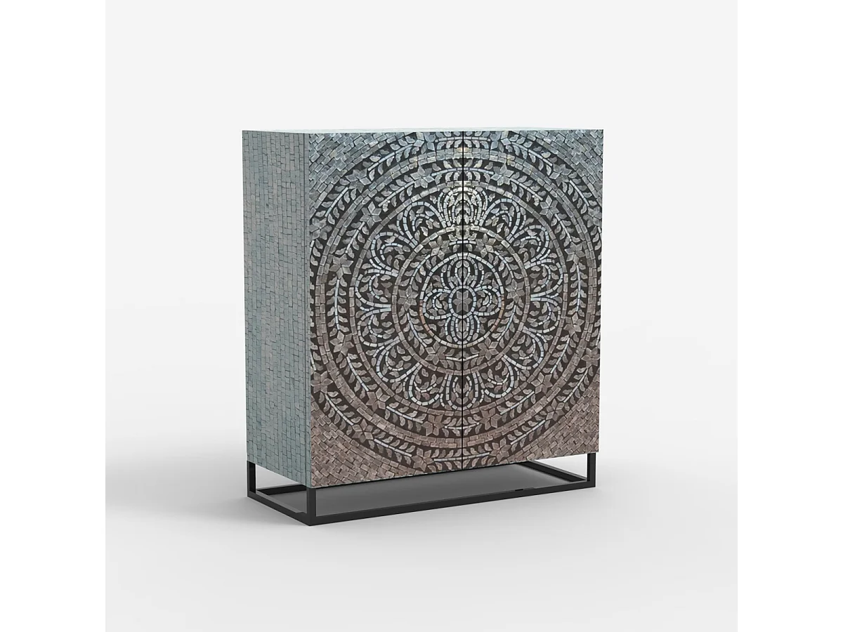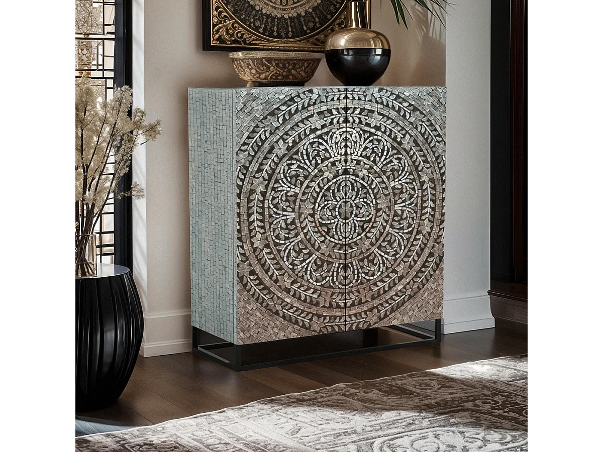 Aparador alto de salón con 2 puertas con incrustaciones de nácar Nika