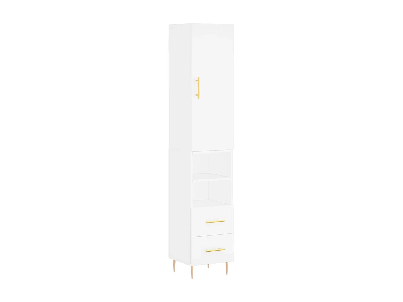 Aparador alto madera contrachapada blanco brillo 34,5x34x180 cm ES52747