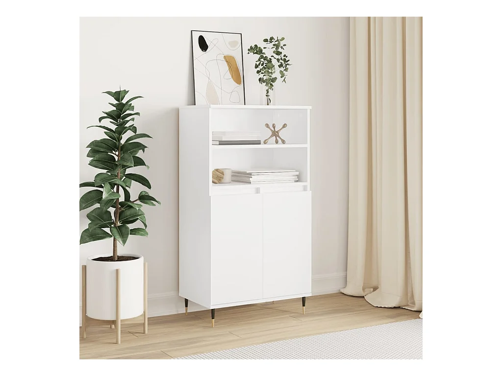 Aparador alto madera contrachapada blanco brillo 60x36x110 cm ES29488
