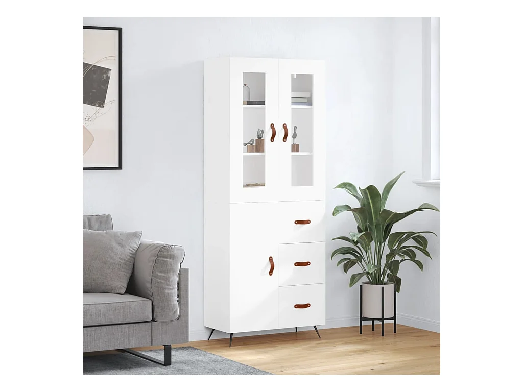Aparador alto madera contrachapada blanco 69,5x34x180 cm ES54524