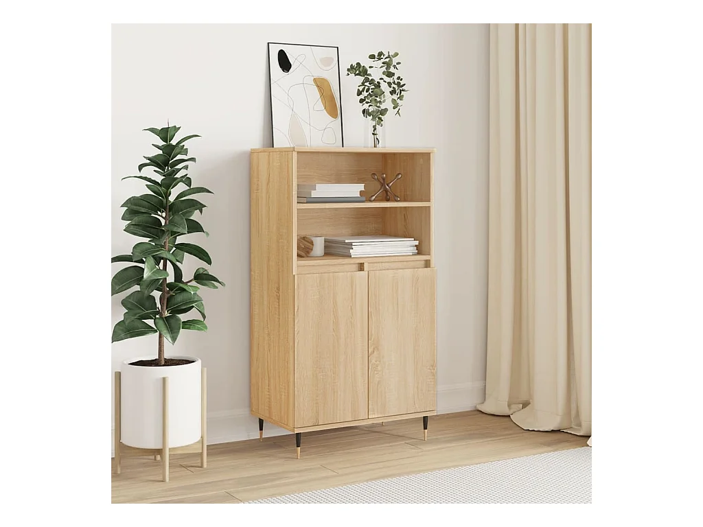Aparador alto madera contrachapada color roble 60x36x110 cm