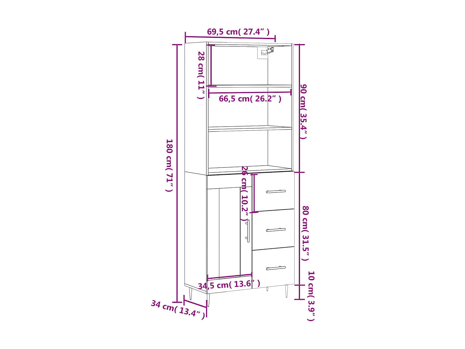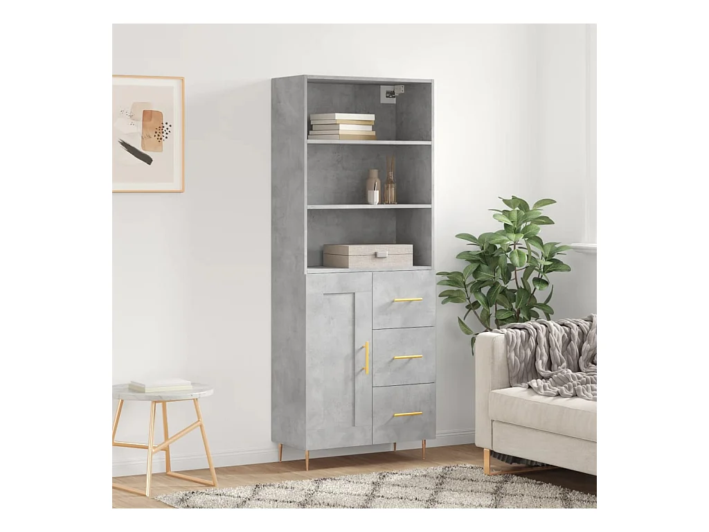 Aparador alto madera contrachapada gris hormigón 69,5x34x180 cm