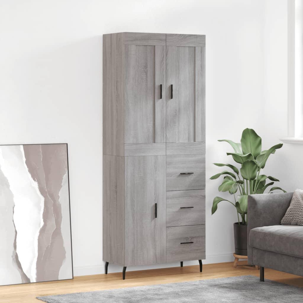 Aparador alto madera contrachapada gris sonoma 69,5x34x180 cm
