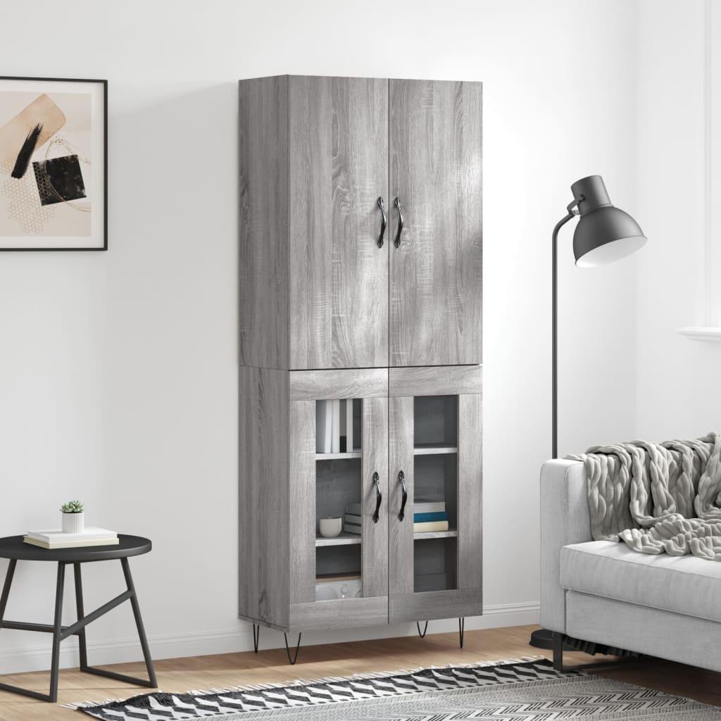 Aparador alto madera contrachapada gris sonoma 69,5x34x180 cm ES53041
