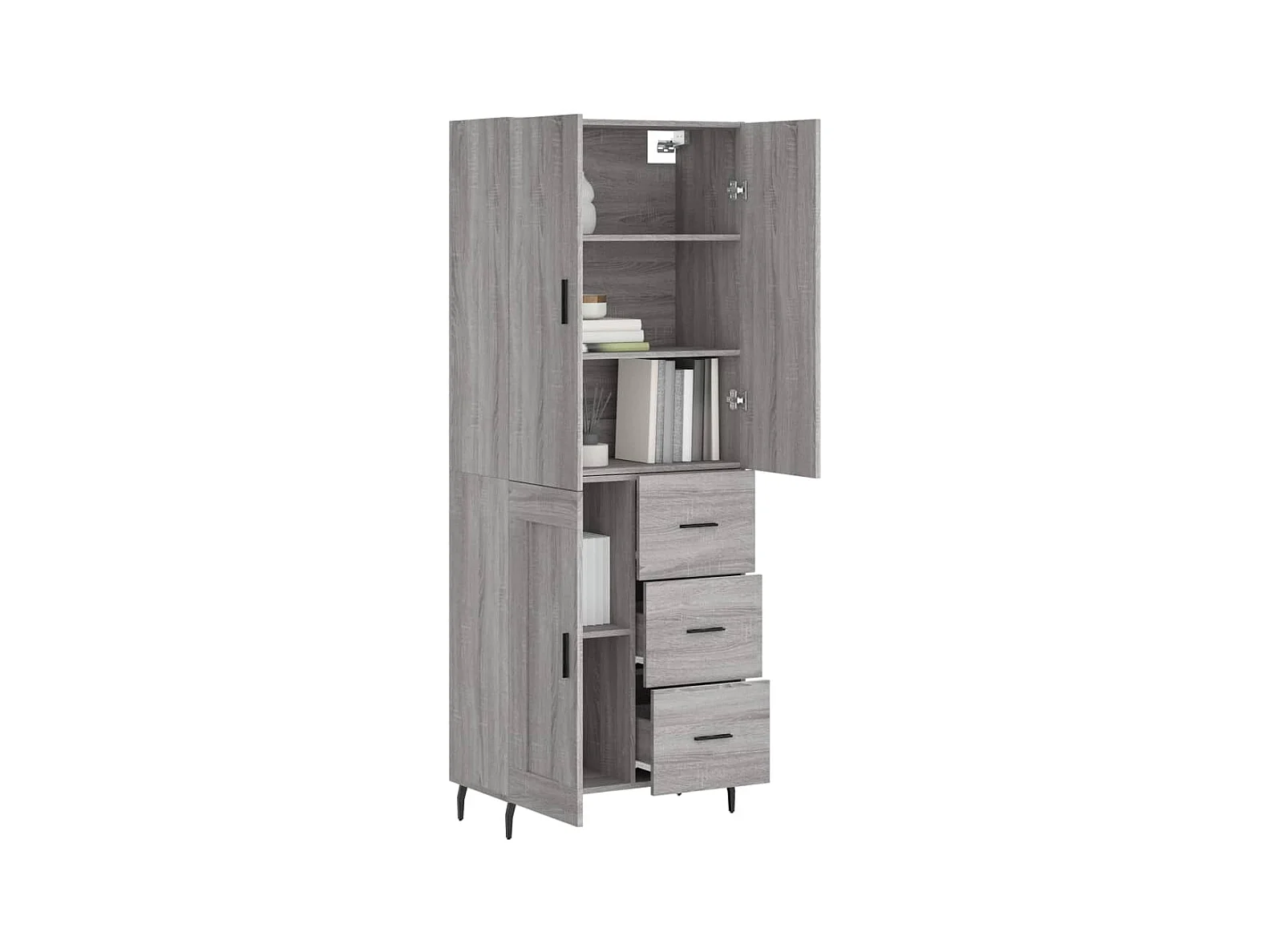 Aparador alto madera contrachapada gris sonoma 69,5x34x180 cm ES78731