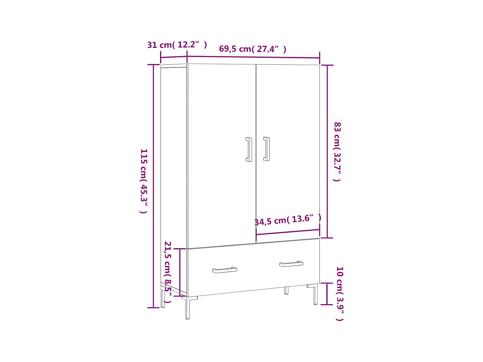 Aparador alto madera de ingeniería gris hormigón 69,5x31x115 cm