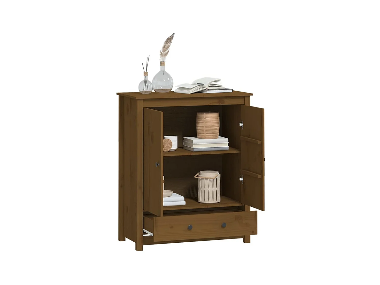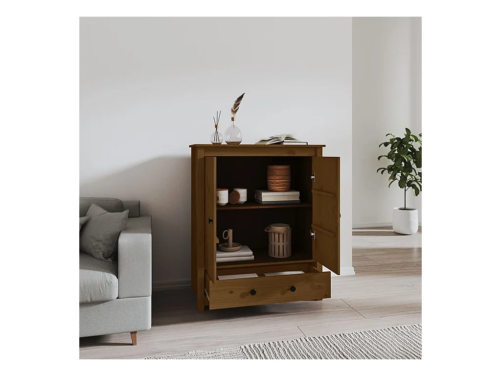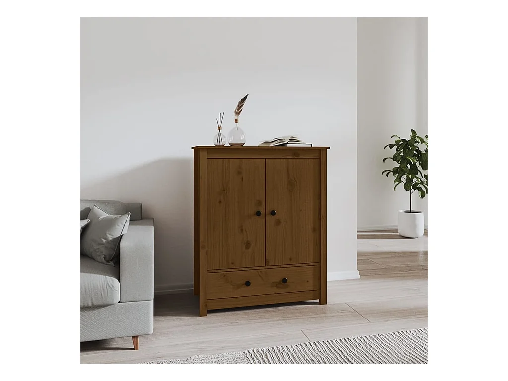 Aparador alto madera maciza de pino marrón miel 83x41,5x100 cm ES14026