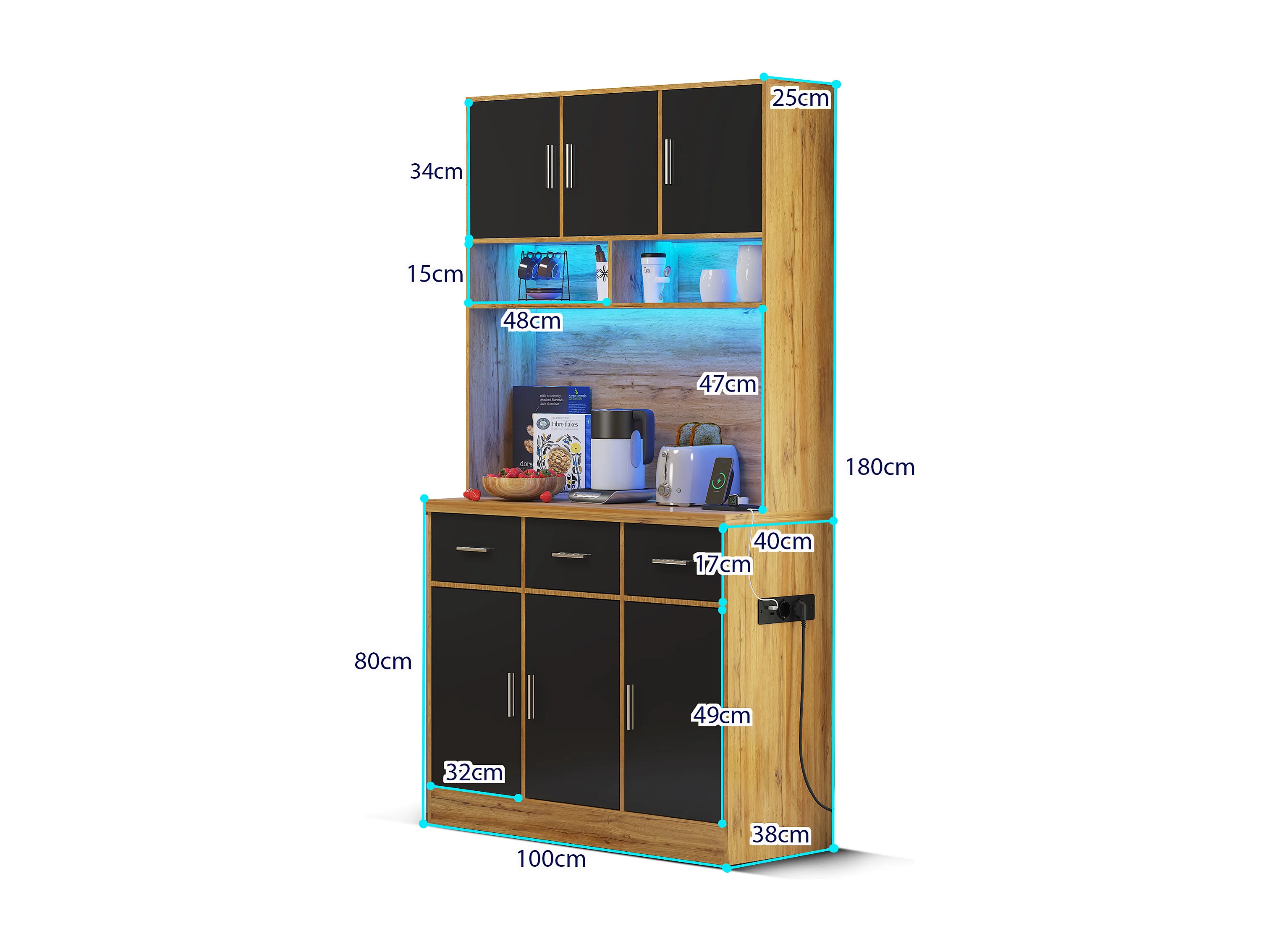 Aparador alto LED MDF 100x40x180 cm con cajones, estantes regulables y enchufes integrados