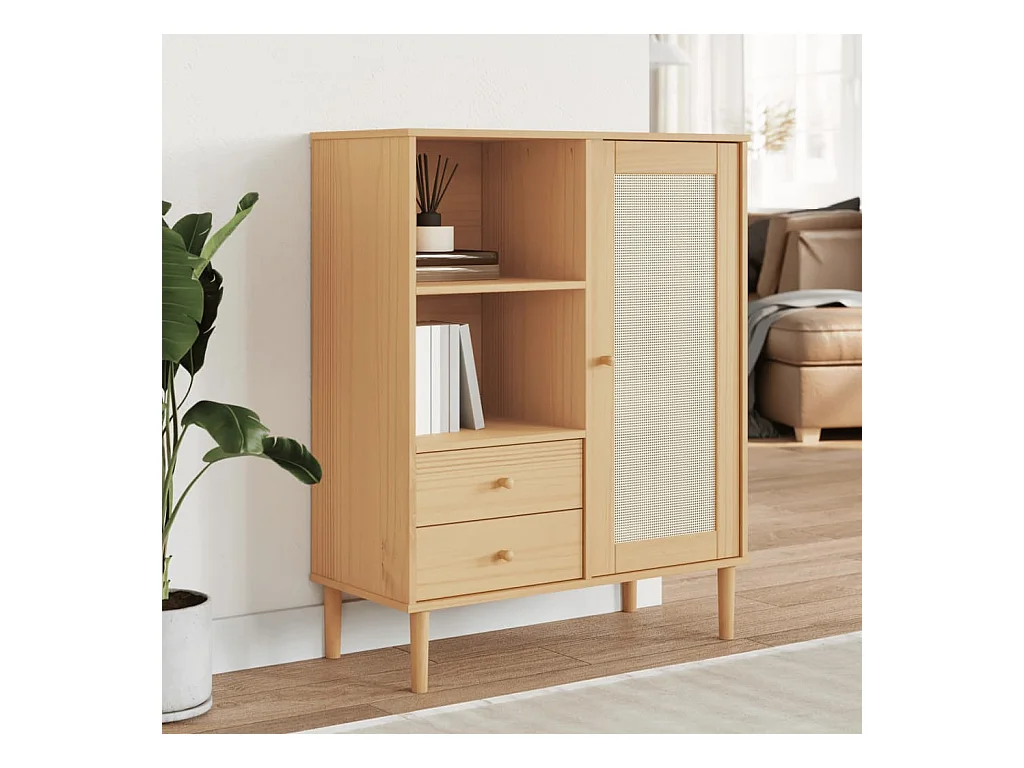 Aparador alto SENJA aspecto de ratán madera marrón 90x40x112 cm
