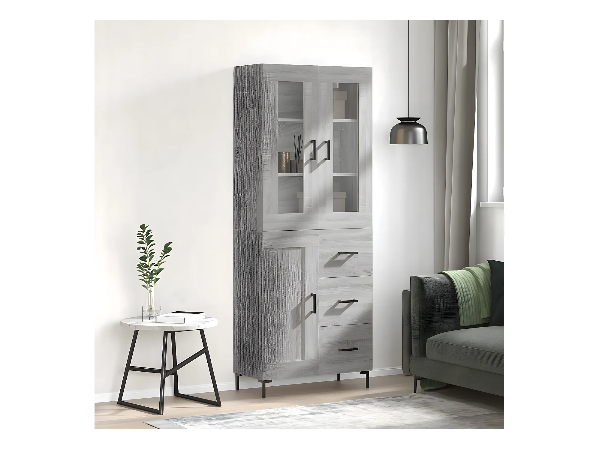 Aparador alto Gris hormigón 69,5x34x180 cm Madera contrachapada
