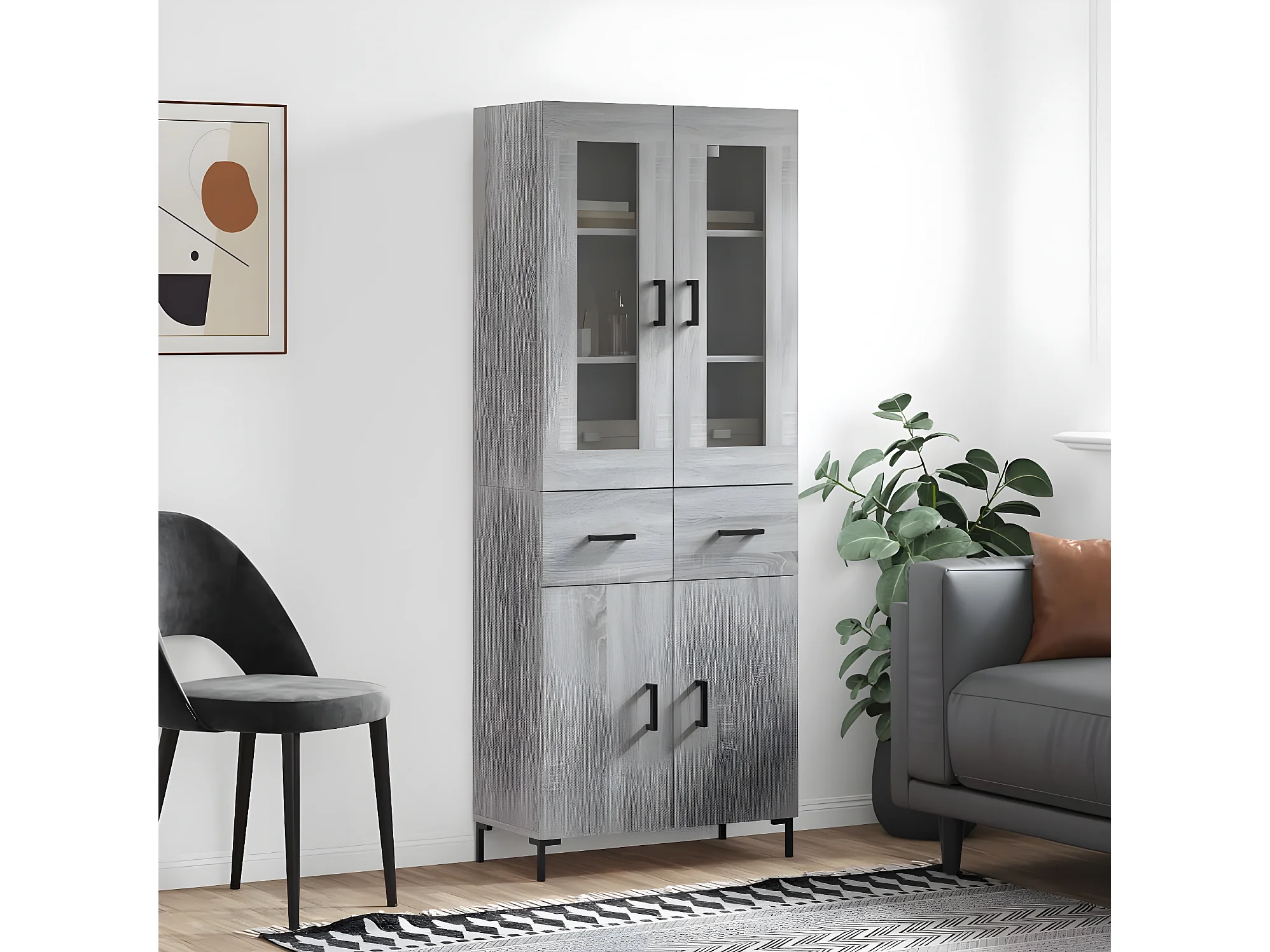 Aparador alto Sonoma gris 69,5x34x180 cm madera contrachapada