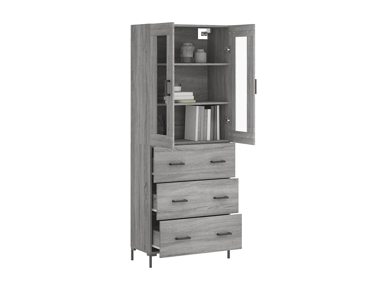 Aparador alto Sonoma gris 69,5x34x180 cm madera contrachapada