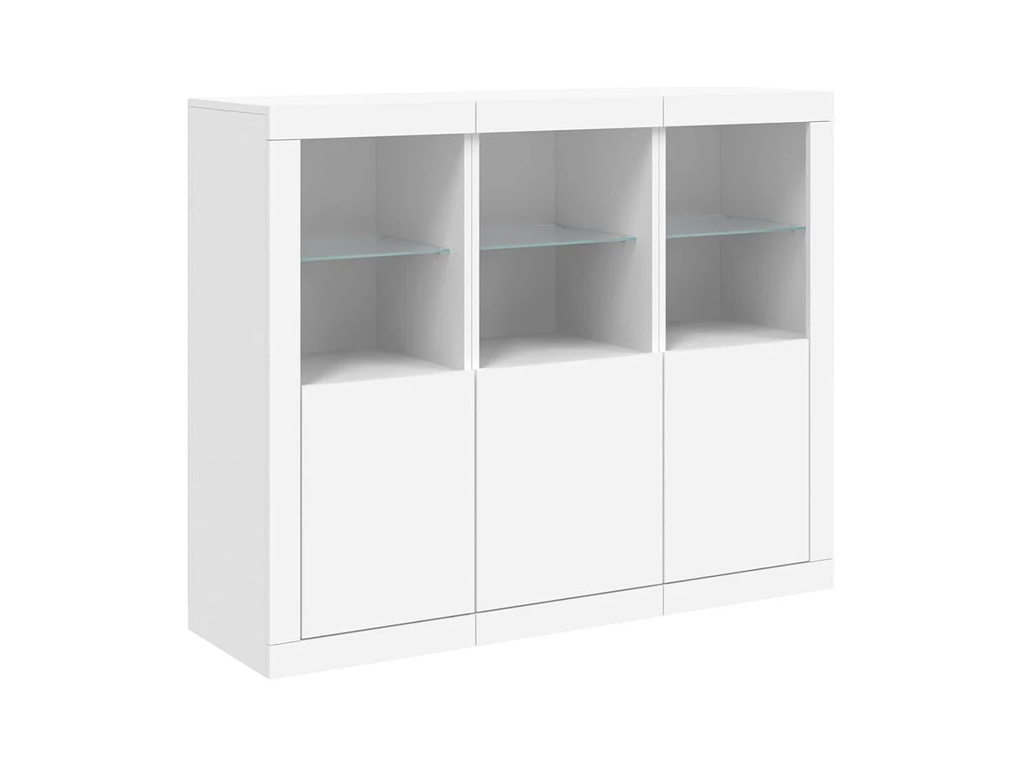 Aparador Aparador Cómoda Gabinete Unidad de Almacenamiento Organizador Cocina Sala de Estar con Luces LED 3 Piezas Madera de Ingeniería Blanca 02_0037199