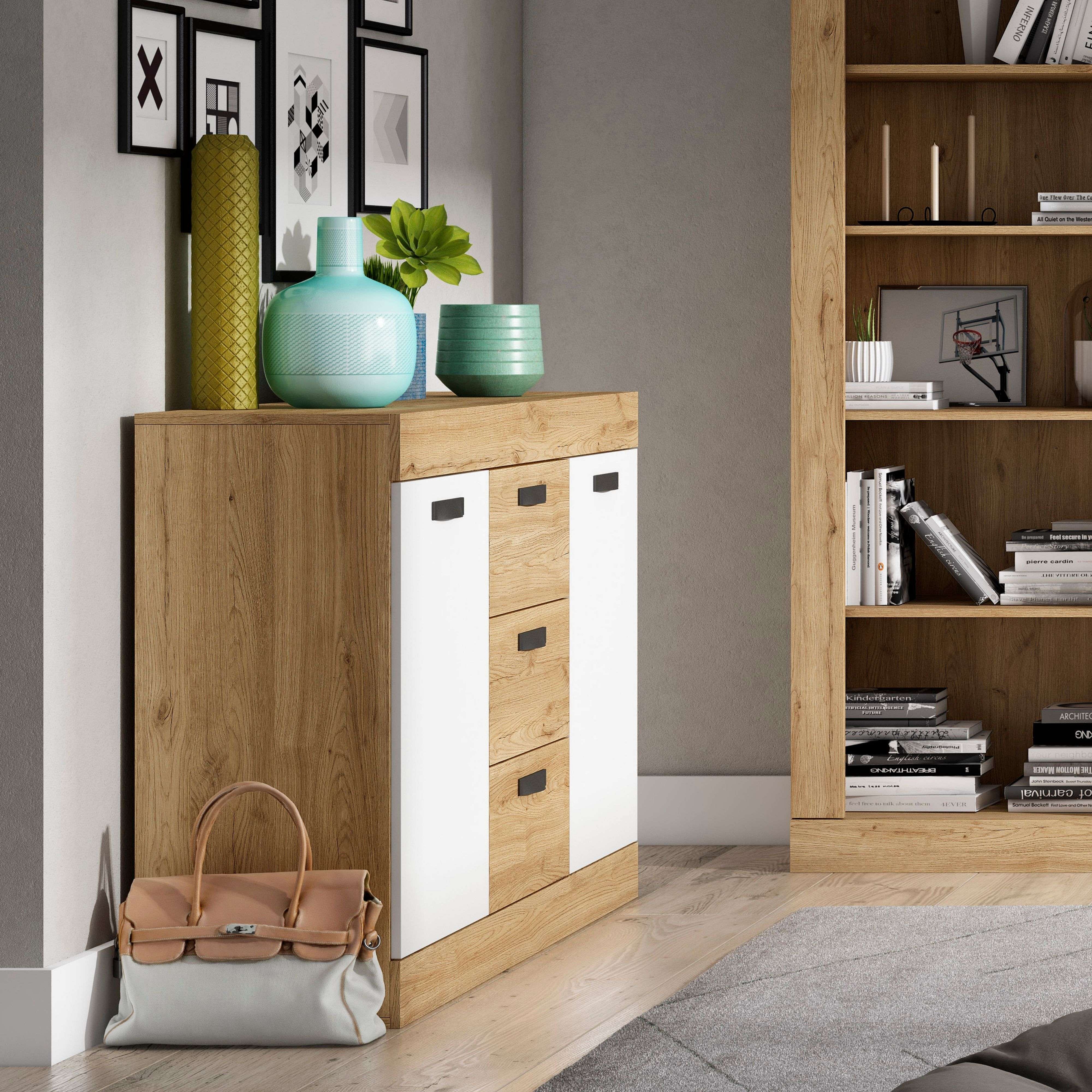Aparador Salón Acces 3P Roble Hamilton y Blanco Mate 122cm