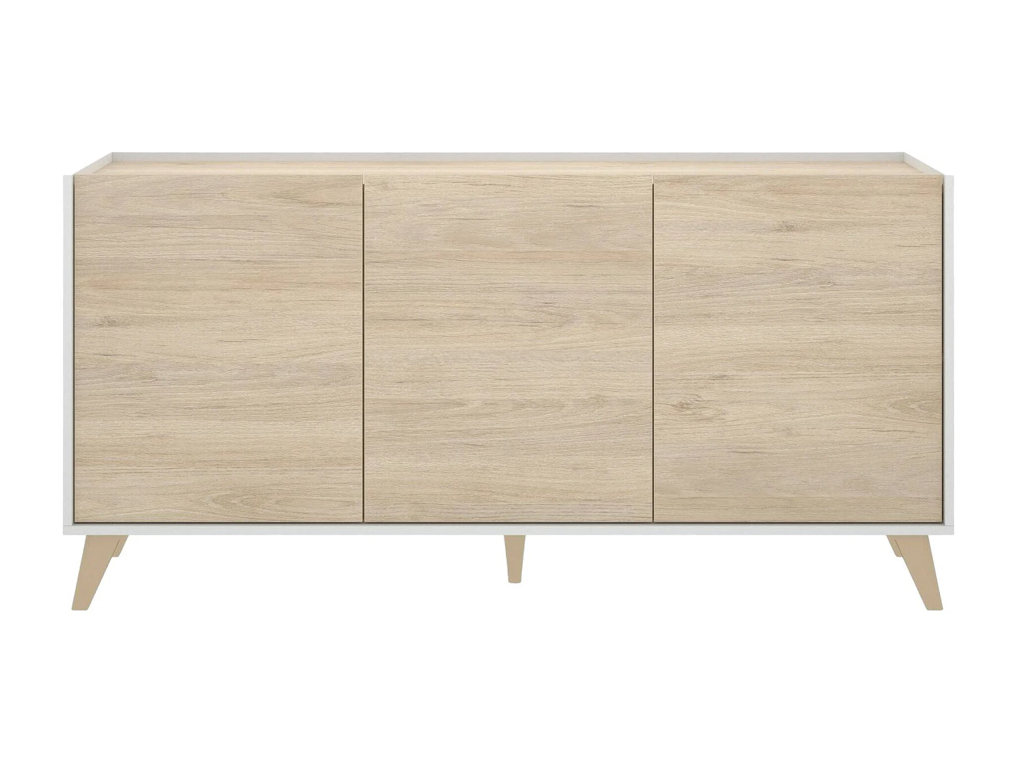 Aparador Avez, Buffet para salón, Aparador moderno para salón con 3 puertas, 155x43h75 cm, Roble y Blanco