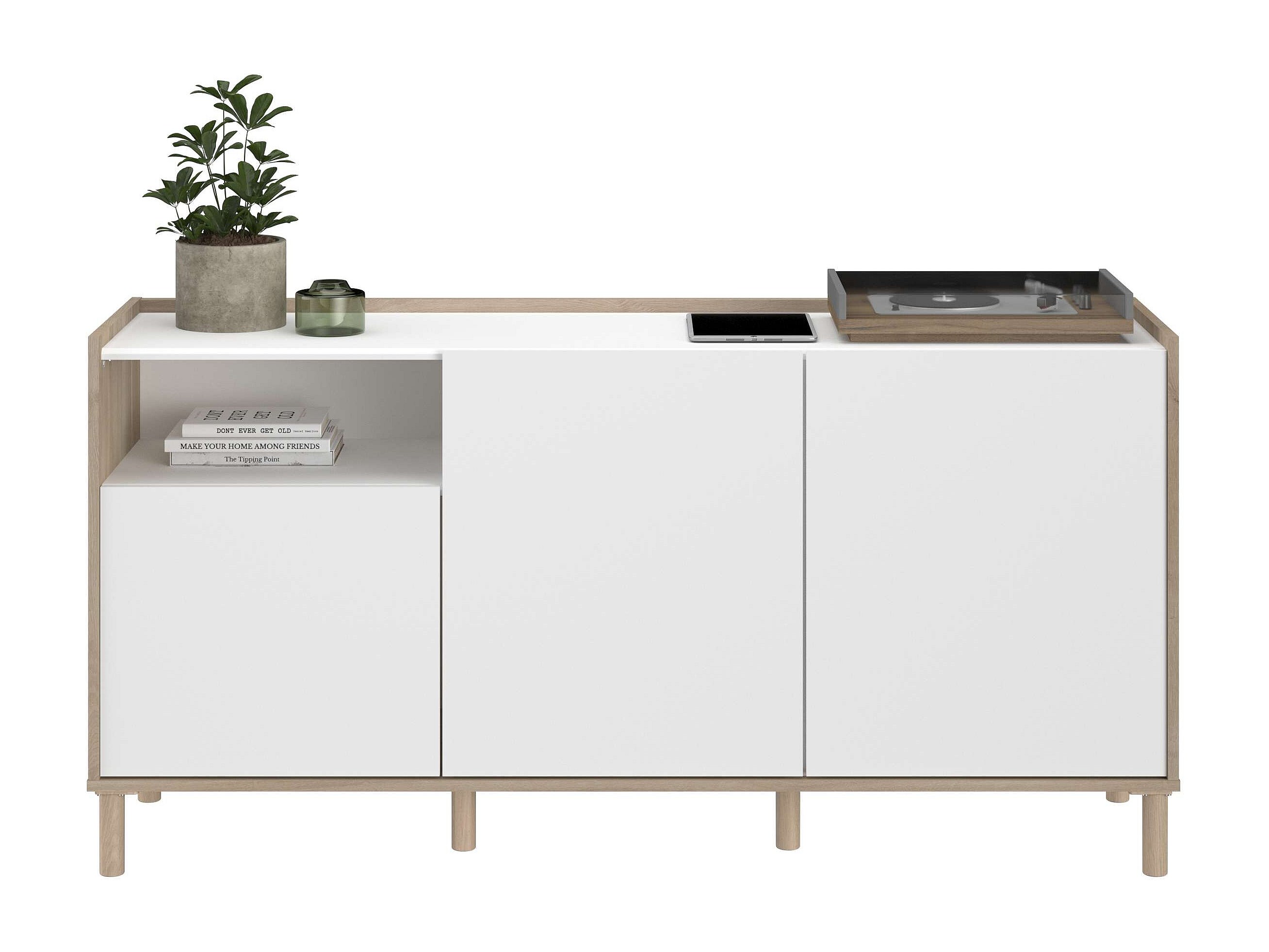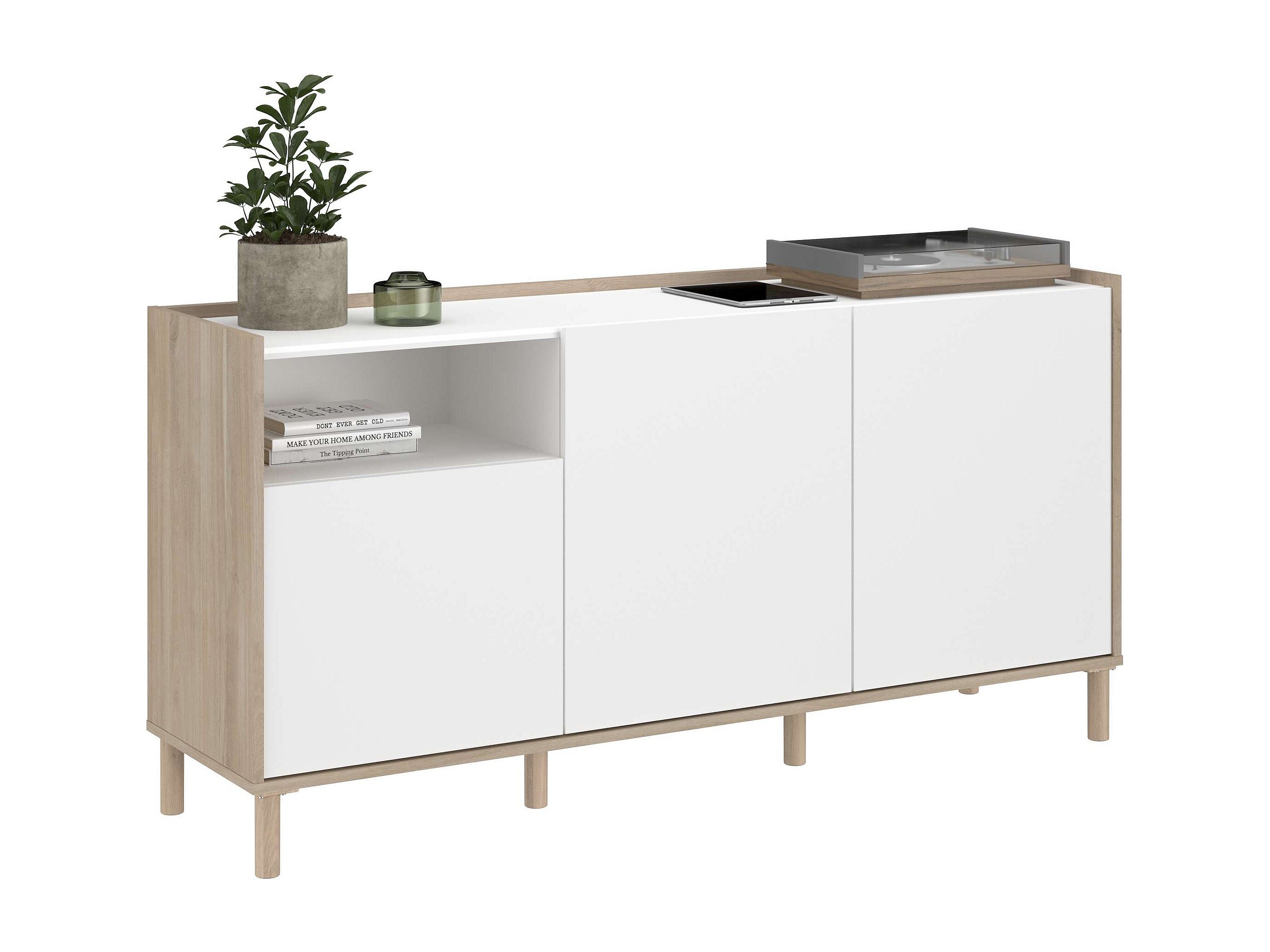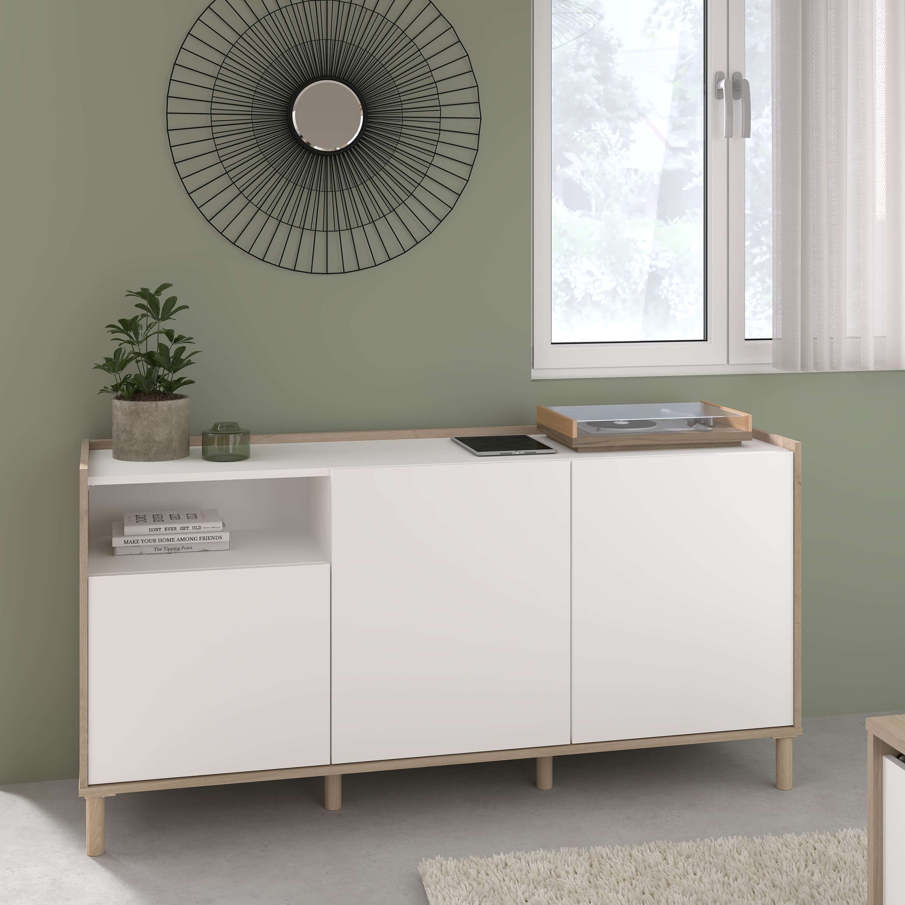 Aparador Tokio Estilo Nórdico Blanco Albo y Roble 3 Puertas 136 cm