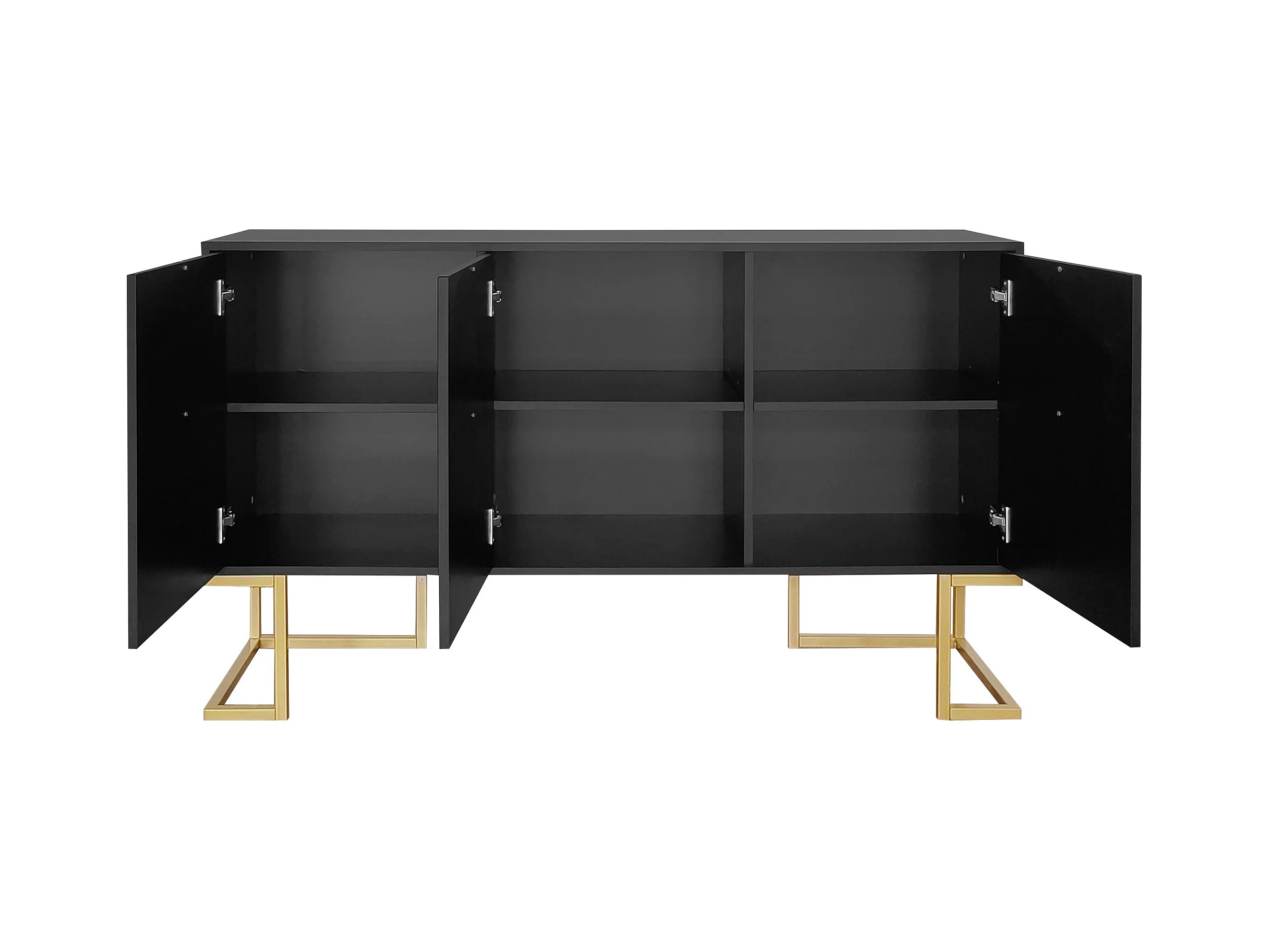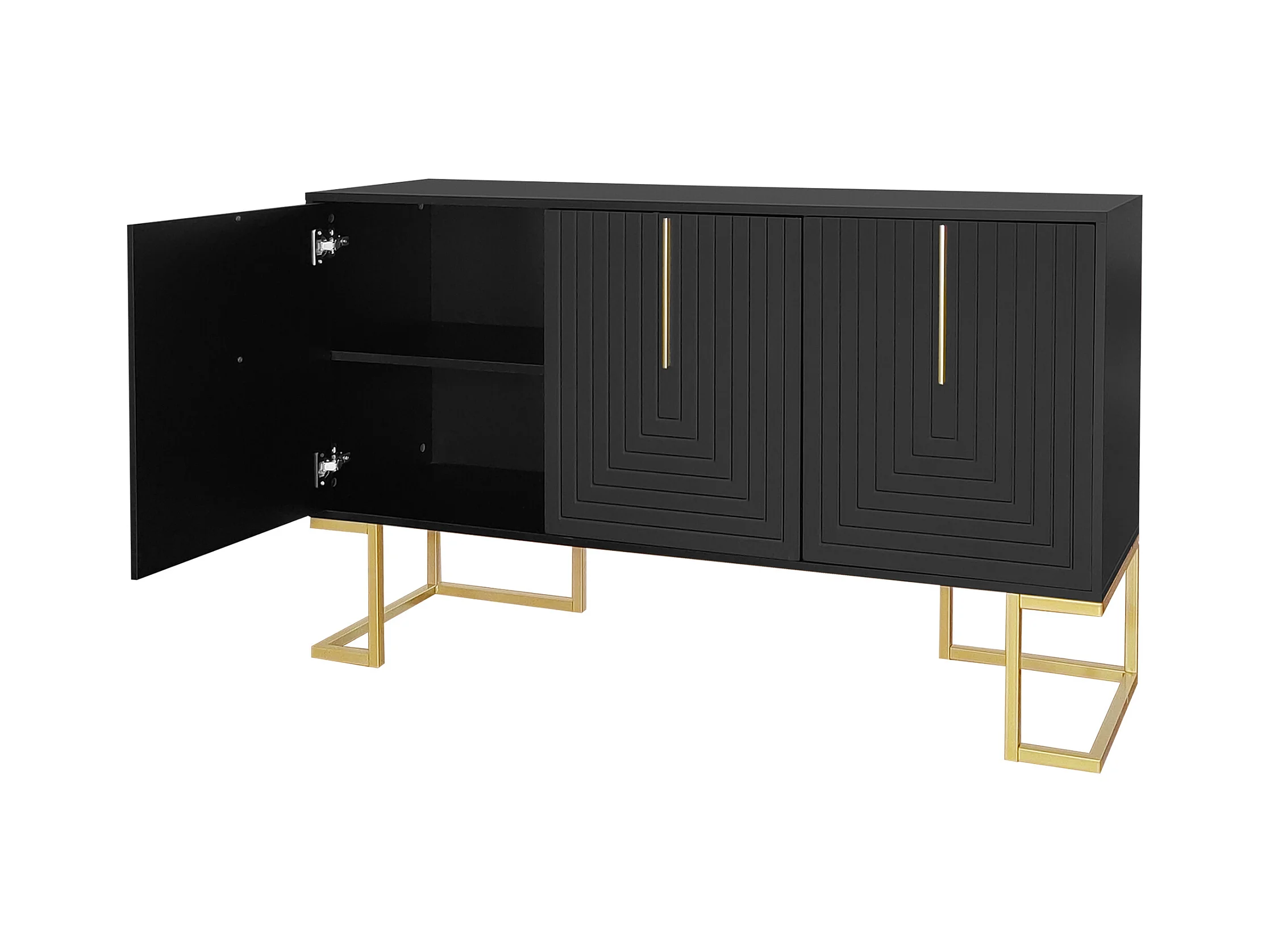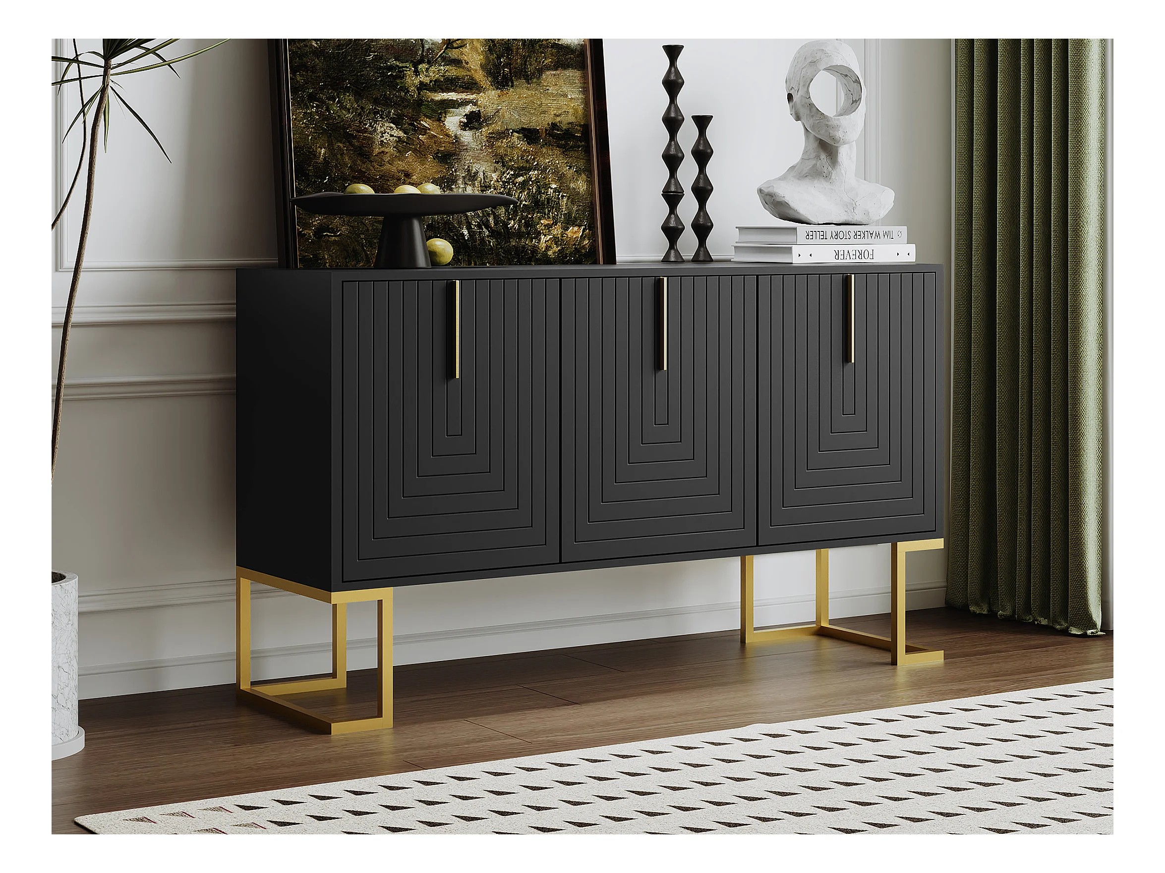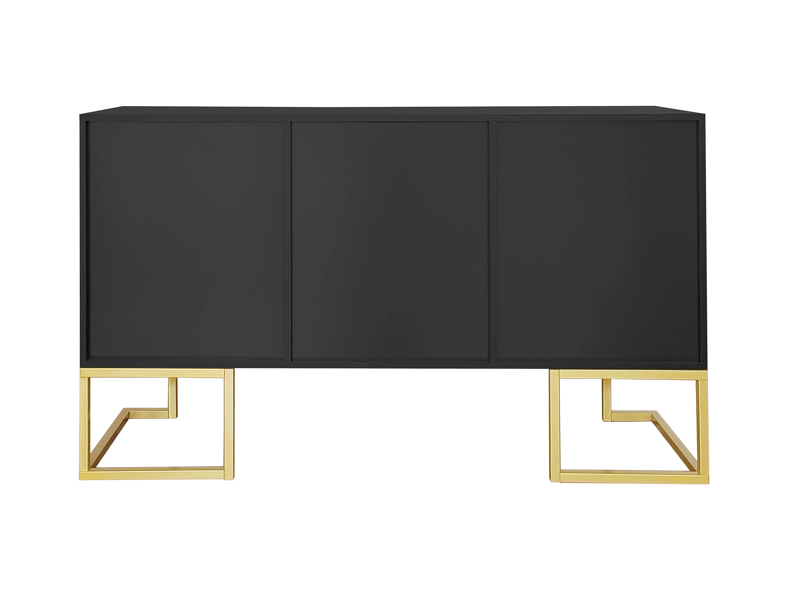 Aparador bajo de 3 puertas con estantes regulables - 138x40x80,5cm - Madera MDF y metal dorado - Negro
