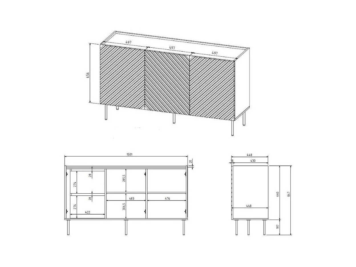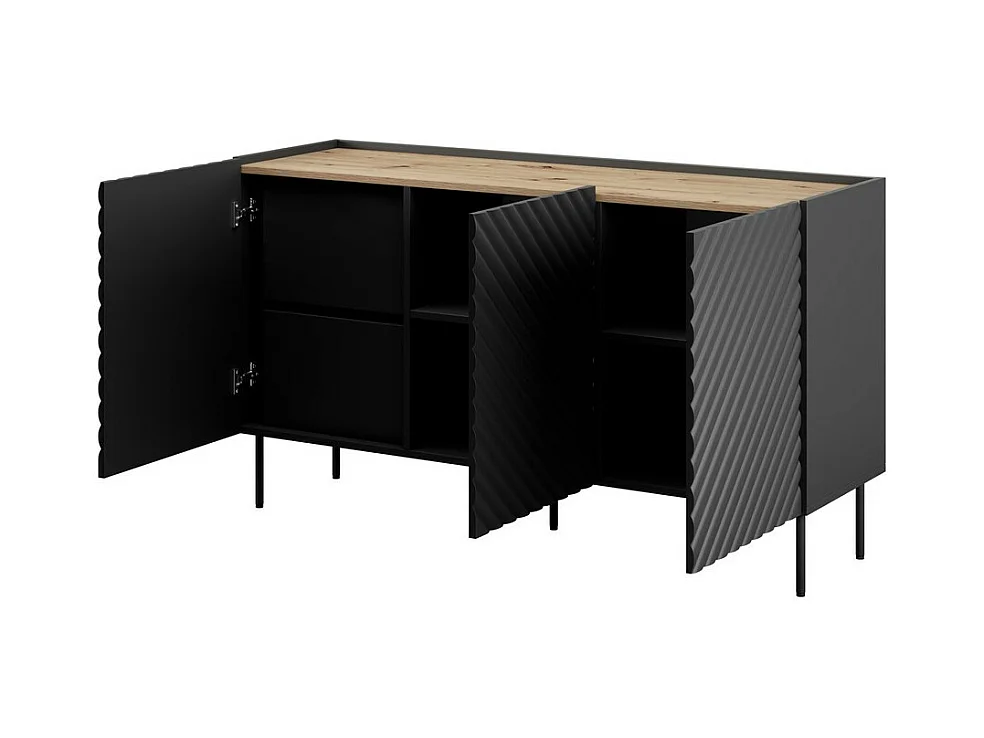 Aparador bajo Emile negro mate y aspecto roble 150 cm