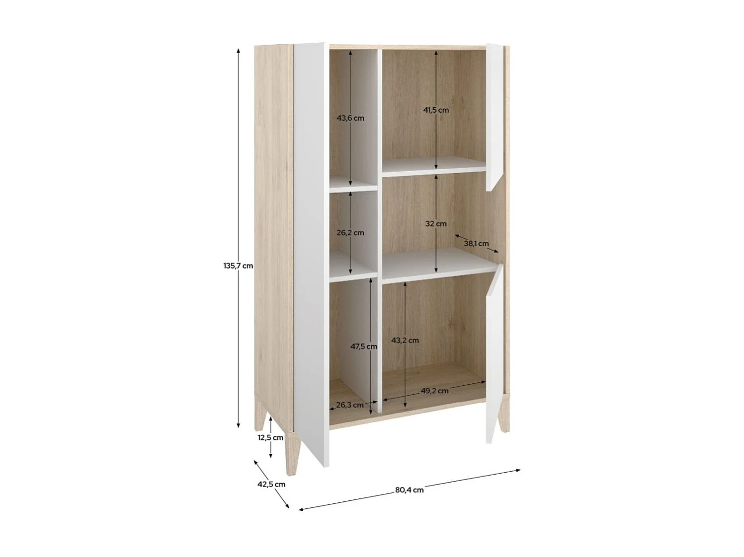 Aparador Bari con 3 puertas y compartimento blanco/natural 135,7x80,4x42,5 cm