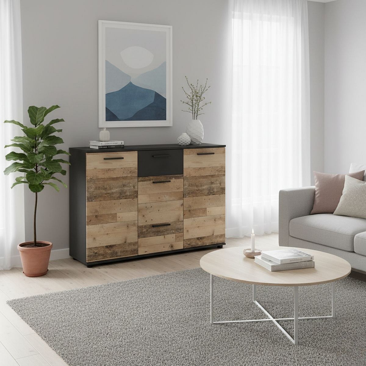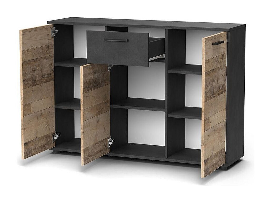 Aparador Berno 3 puertas con cajón natural/grafito 85,3x120,2x32,5 cm