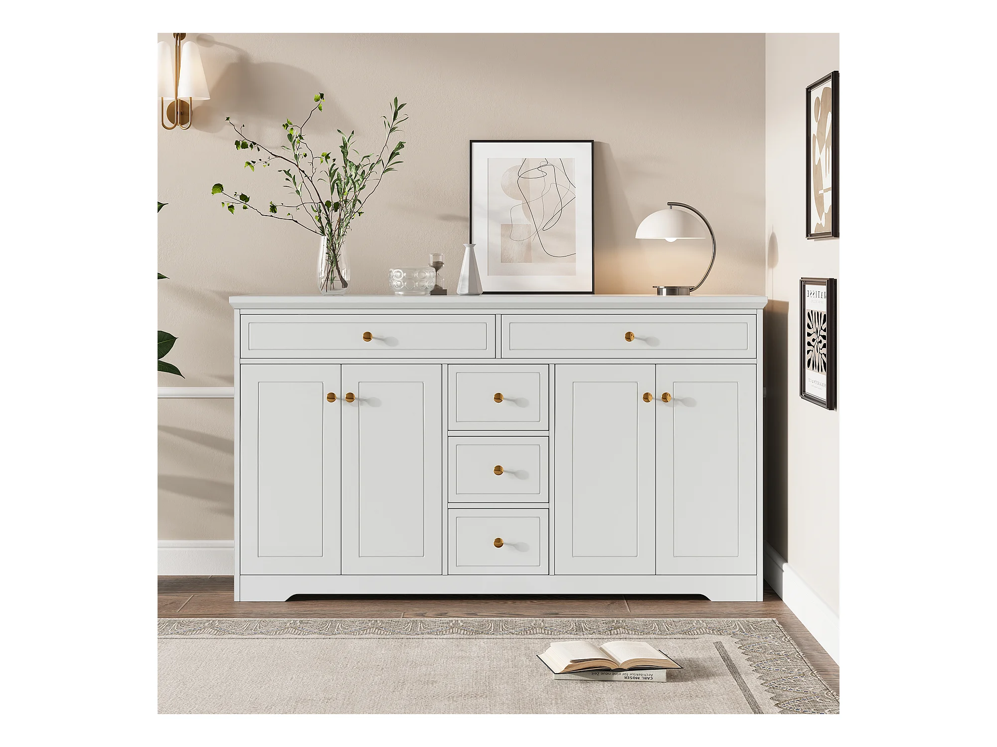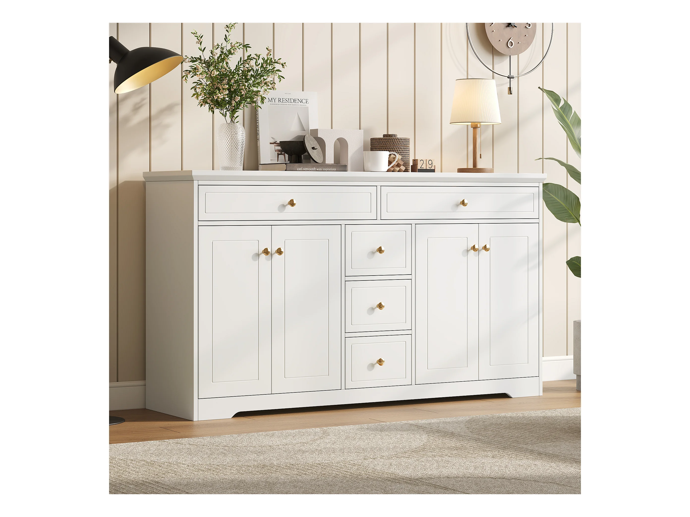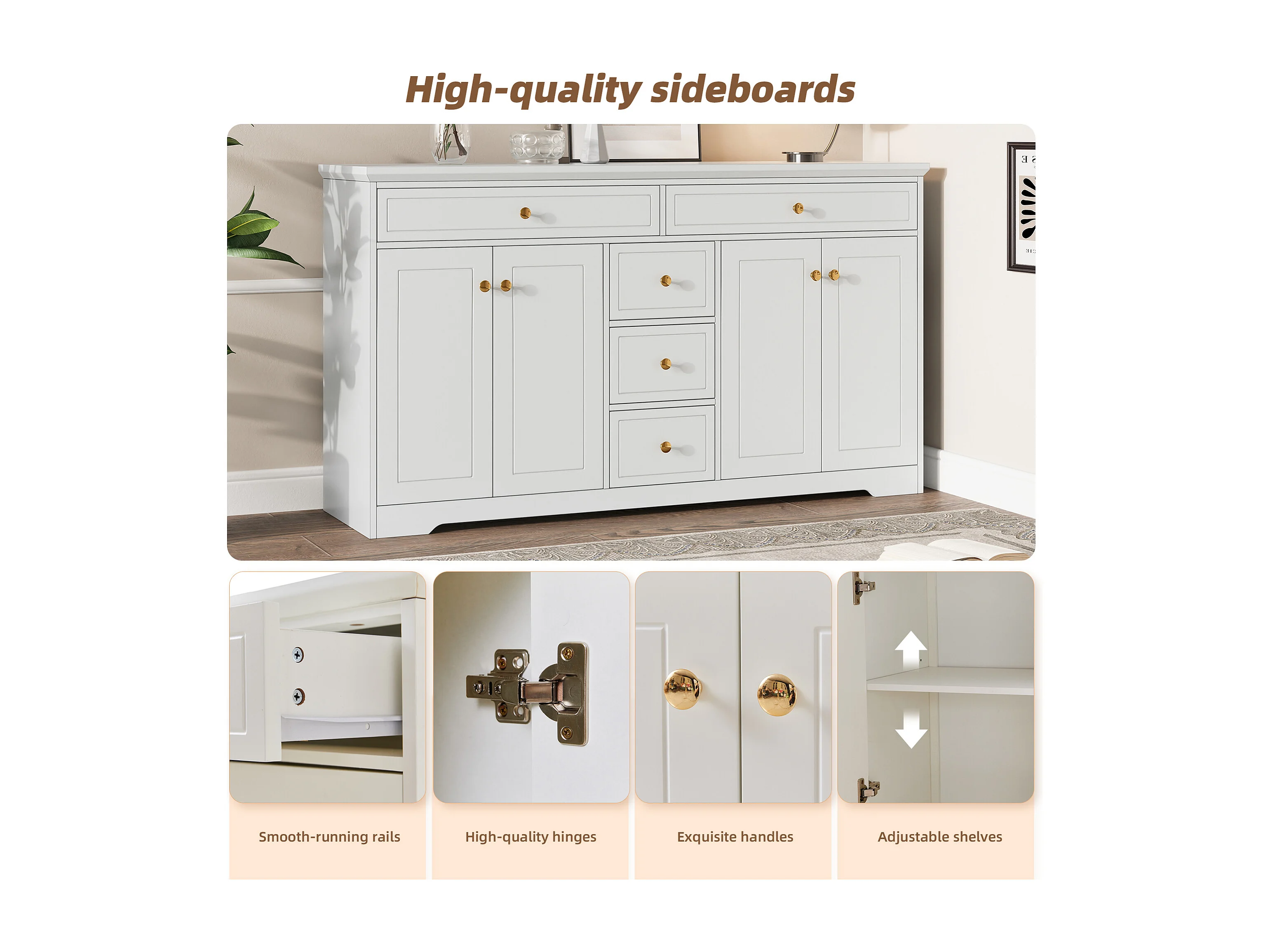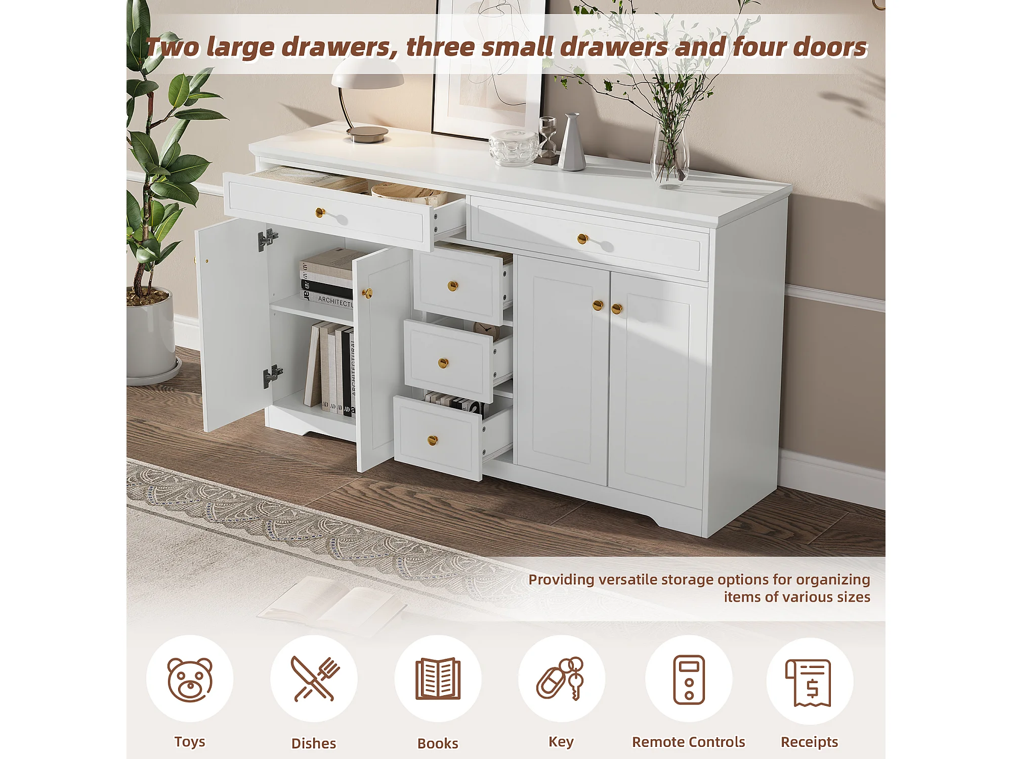 Aparador blanco 150x40x85 cm, con 5 cajones y 2 puertas, aparador para salón, comedor