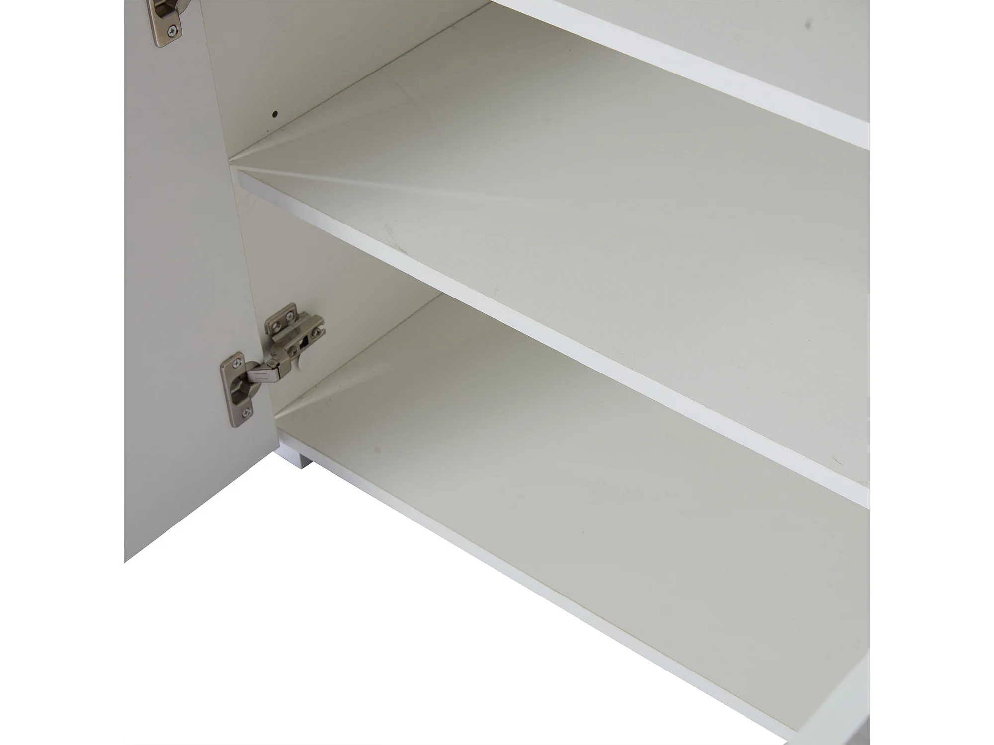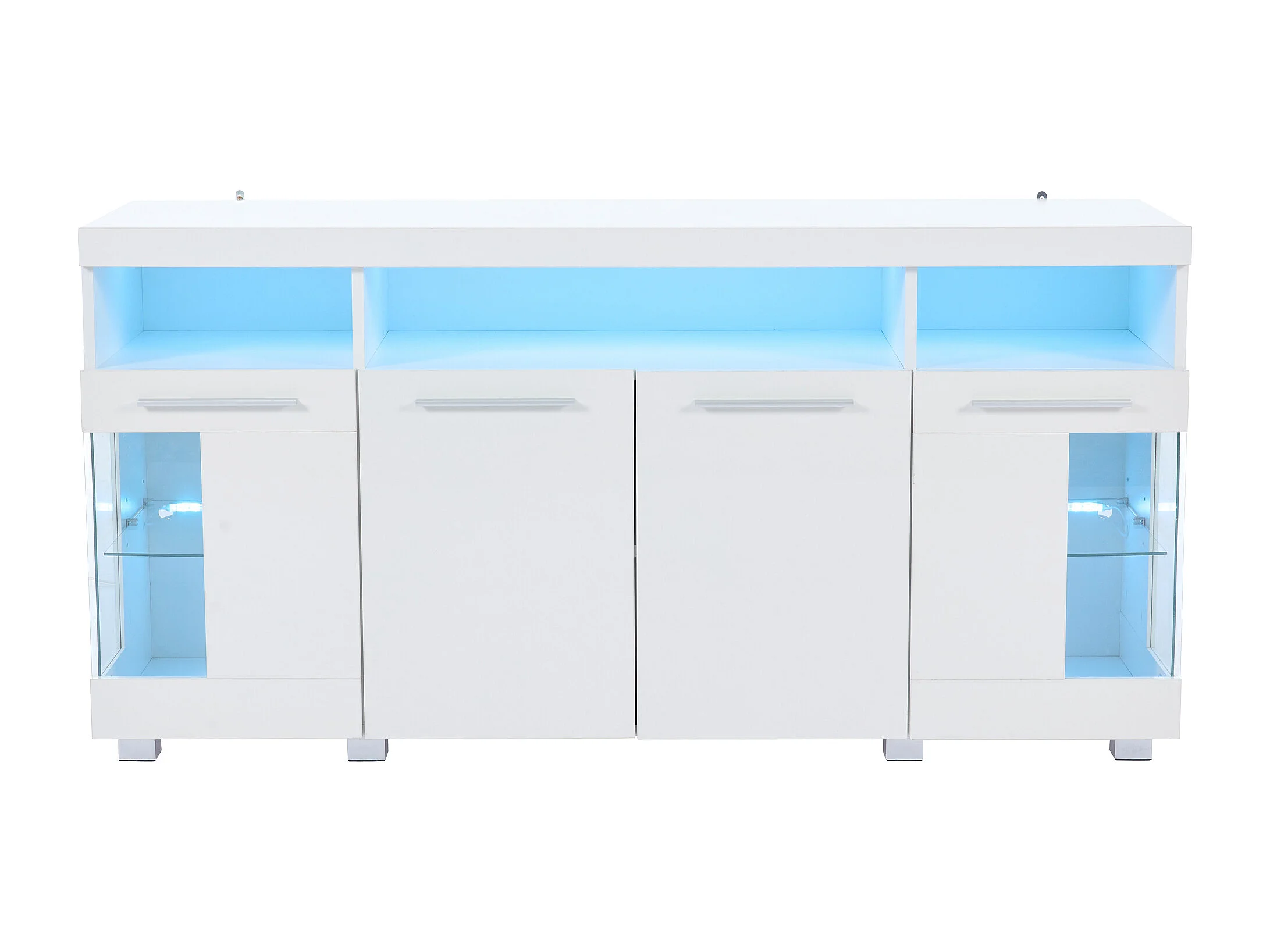 Aparador blanco con luces LED, 140x40x70 cm, 4 puertas y compartimentos, para salón y comedor