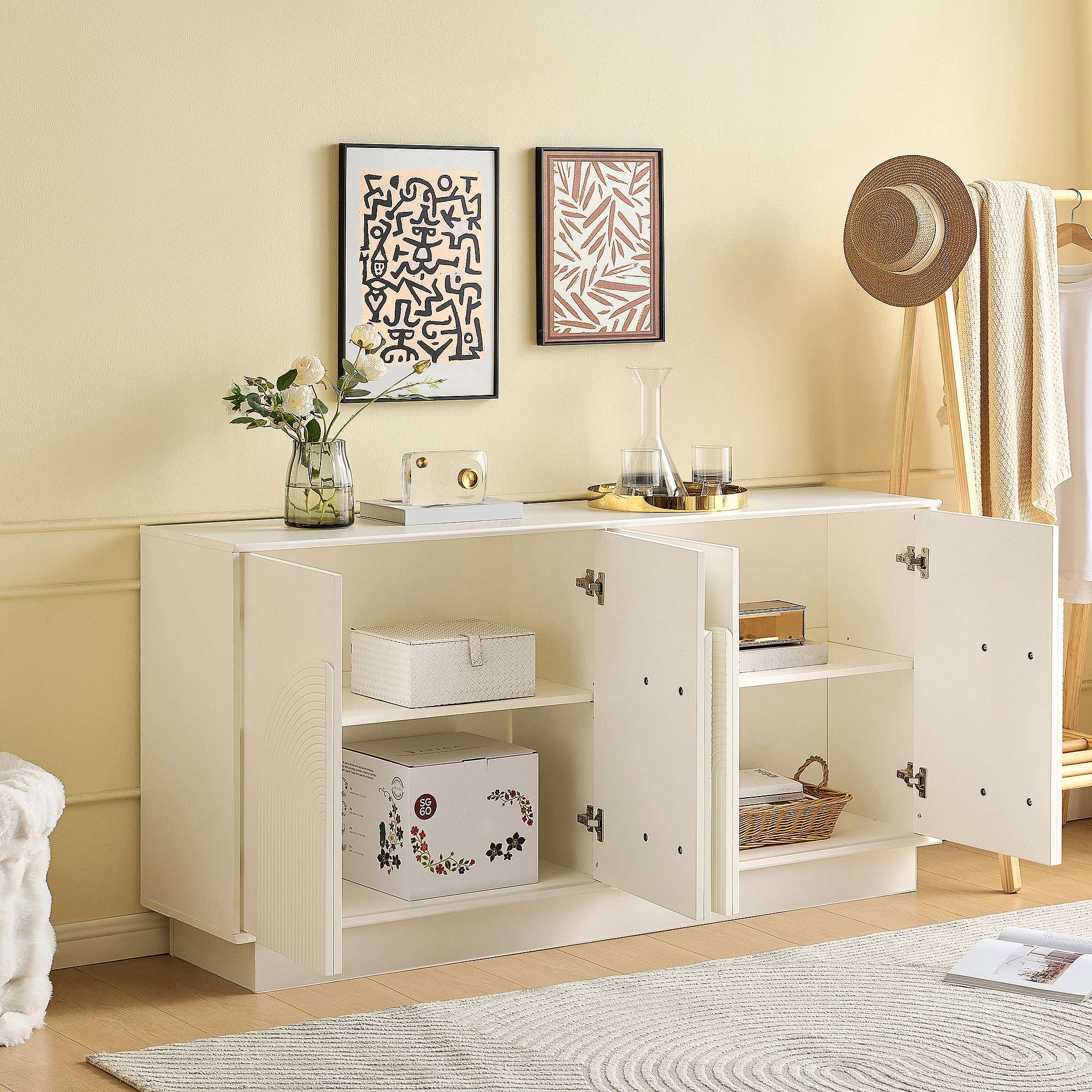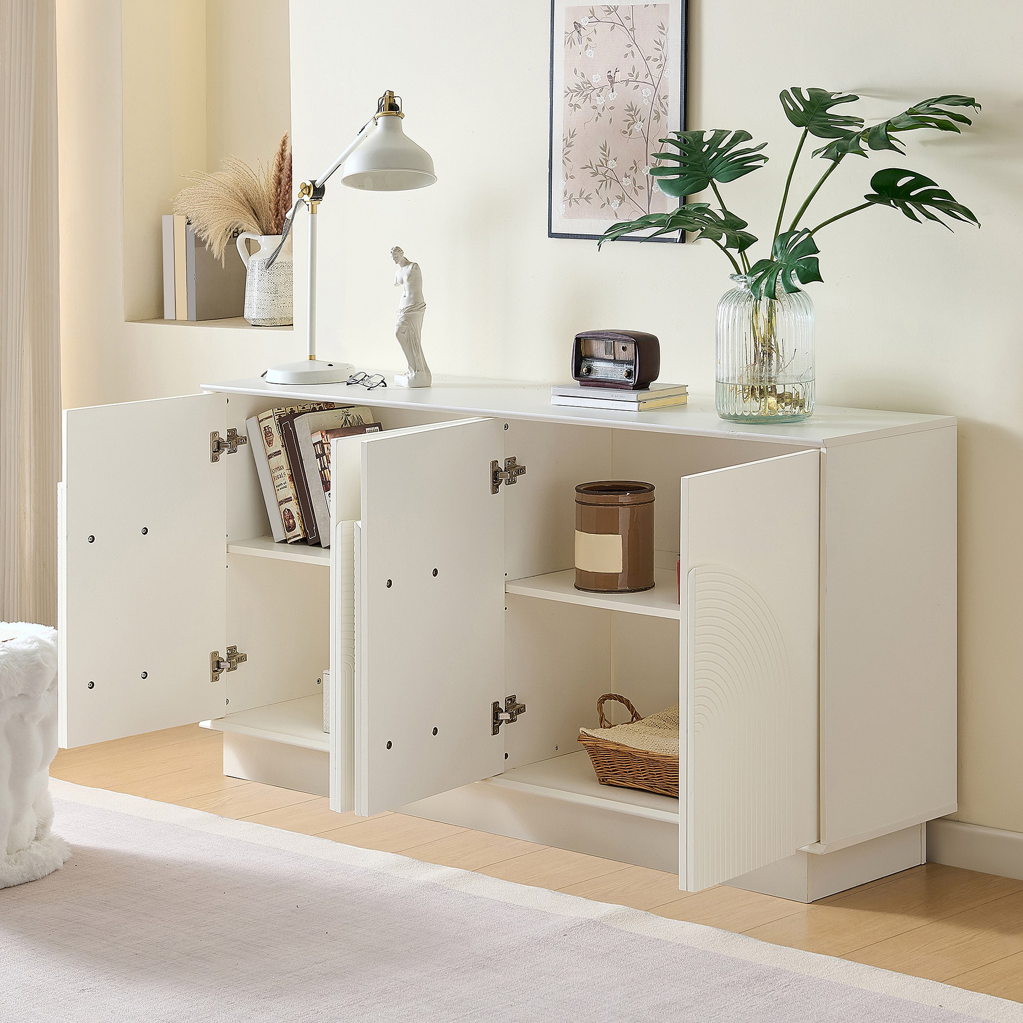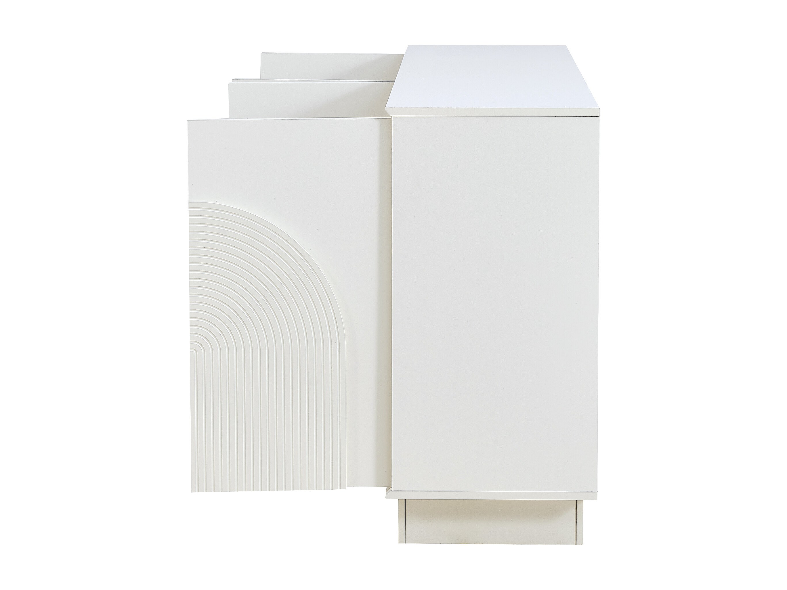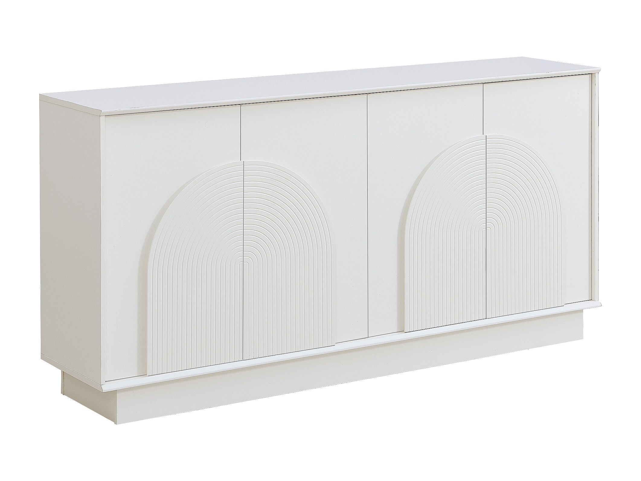 Aparador blanco de 4 puertas, diseño de puerta curva, acabado mate 160x38x80cm