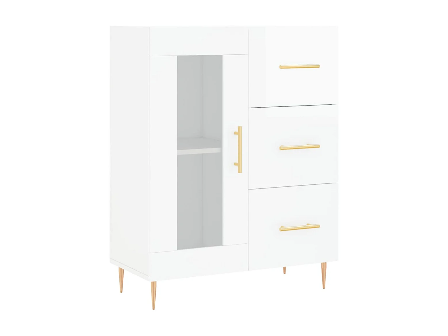 Aparador buffet cómoda armario mueble organizador cocina salón brillante 69,5 x 34 x 90 cm madera contrachapada blanco 02_0030711