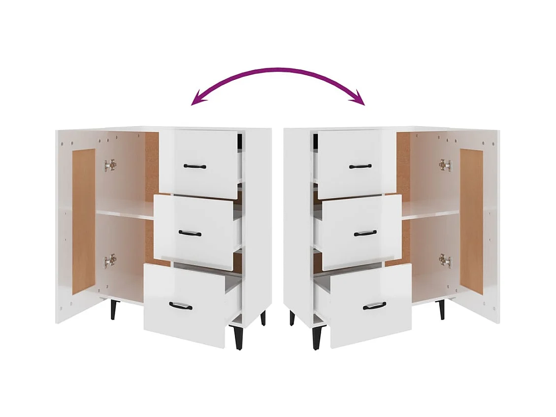 Aparador buffet cómoda mueble mueble de almacenaje organizador cocina salón brillante 69,5 x 34 x 90 cm madera contrachapada blanco 02_0030712