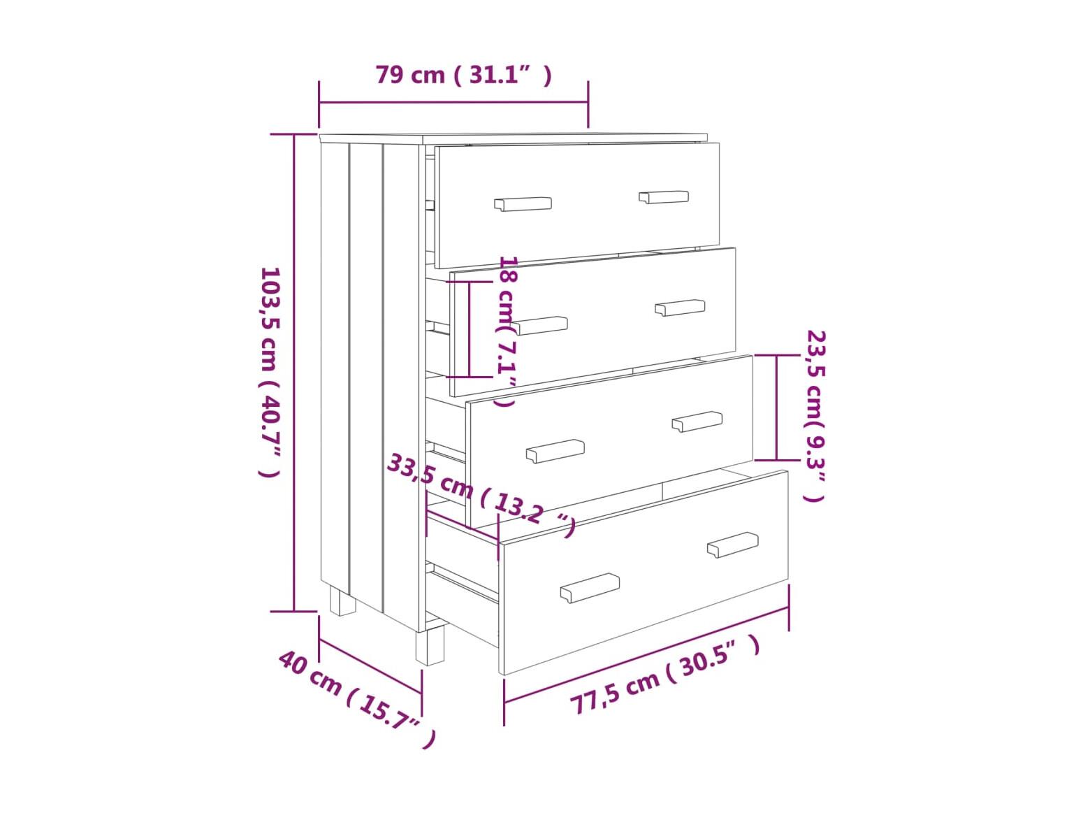Aparador HAMAR madera pino maciza marrón miel 79x40x103,5 cm ES42783