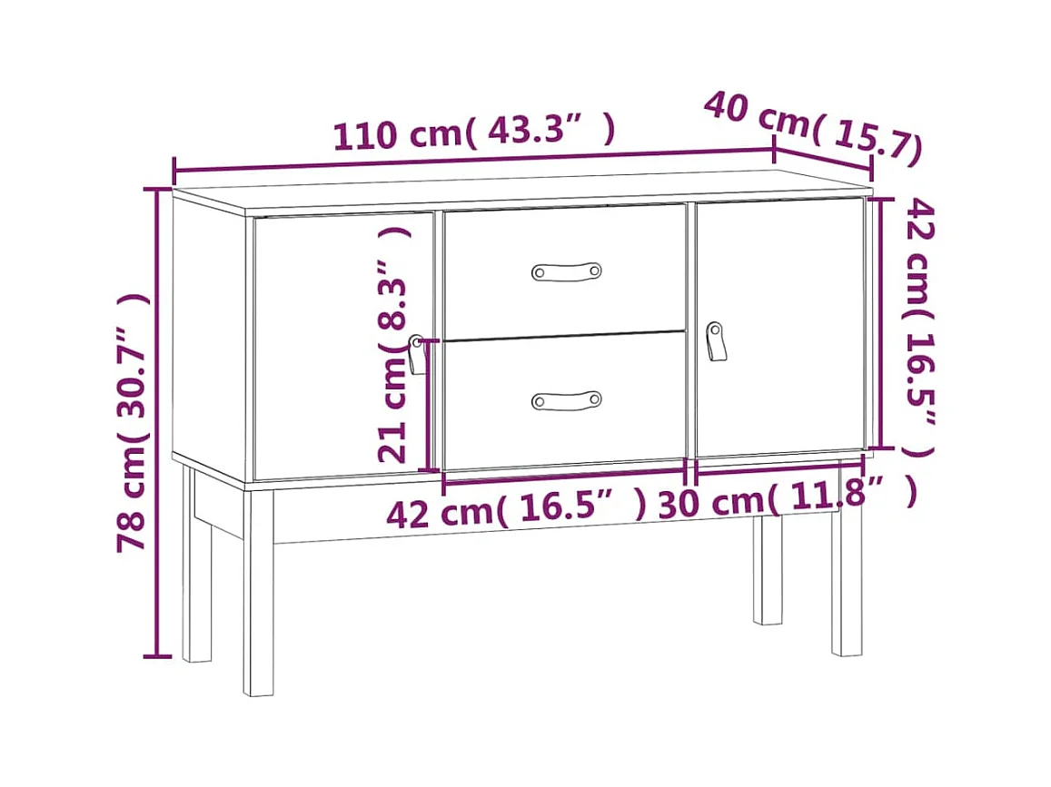 Aparador de madera maciza de pino 110x40x78 cm