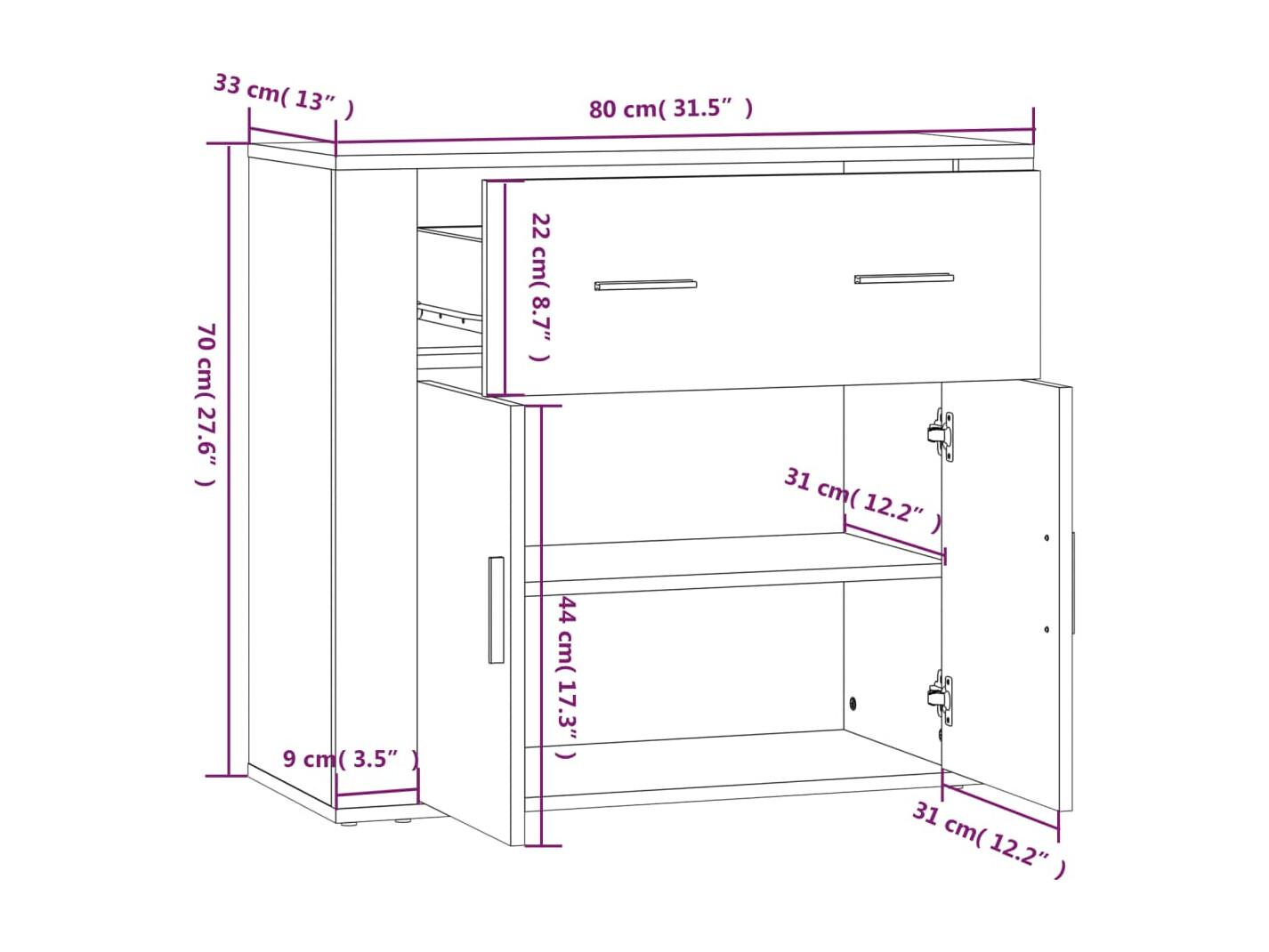 Aparador buffet cómoda armario unidad de almacenamiento organizador cocina salón salón 80 x 33 x 70 cm madera contrachapada marrón 02_0031110