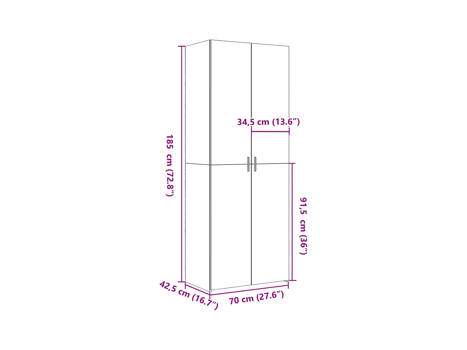 Aparador buffet cómoda armario mueble organizador cocina salón salón alto 70 x 42,5 x 185 cm madera contrachapada negra 02_0035126