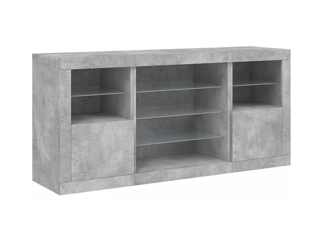 Aparador buffet cómoda armario mueble organizador cocina salón salón con luces LED 142,5 x 37 x 67 cm gris 02_0029977