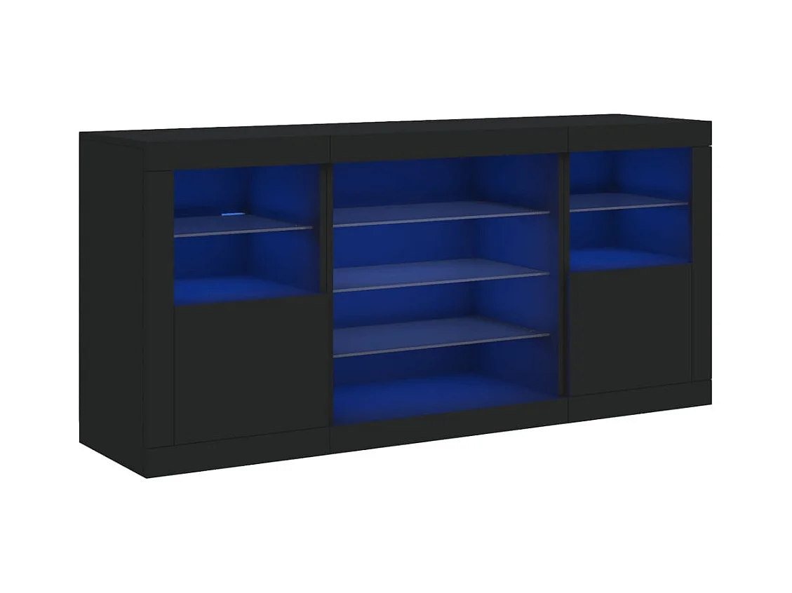 Aparador buffet cómoda armario mueble organizador cocina salón salón con luces LED 142,5 x 37 x 67 cm negro 02_0030014