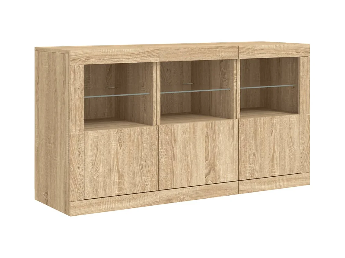 Aparador Aparador Cómoda Gabinete Organizador de Almacenamiento Cocina Sala de Estar con Luces LED 3 Piezas Sonoma Madera de Ingeniería Marrón 02_0037214