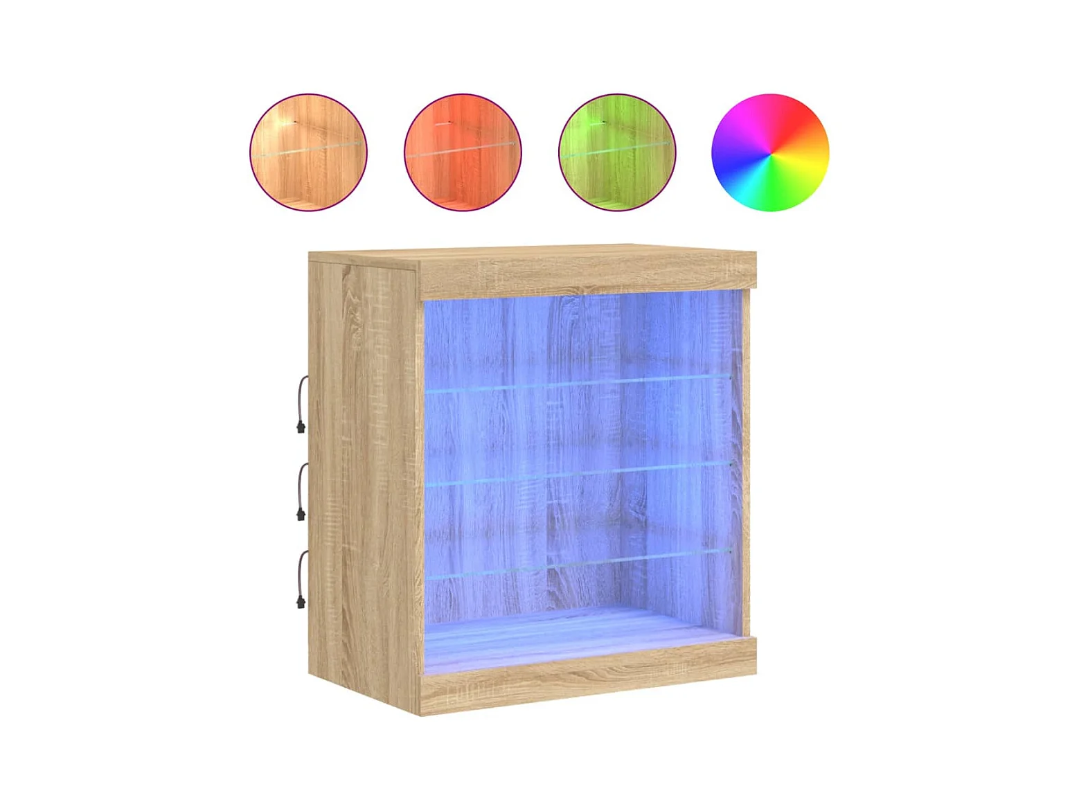 Aparador buffet cómoda armario mueble organizador cocina salón salón con luces LED sonoma 60,5 x 37 x 67 cm marrón 02_0029965