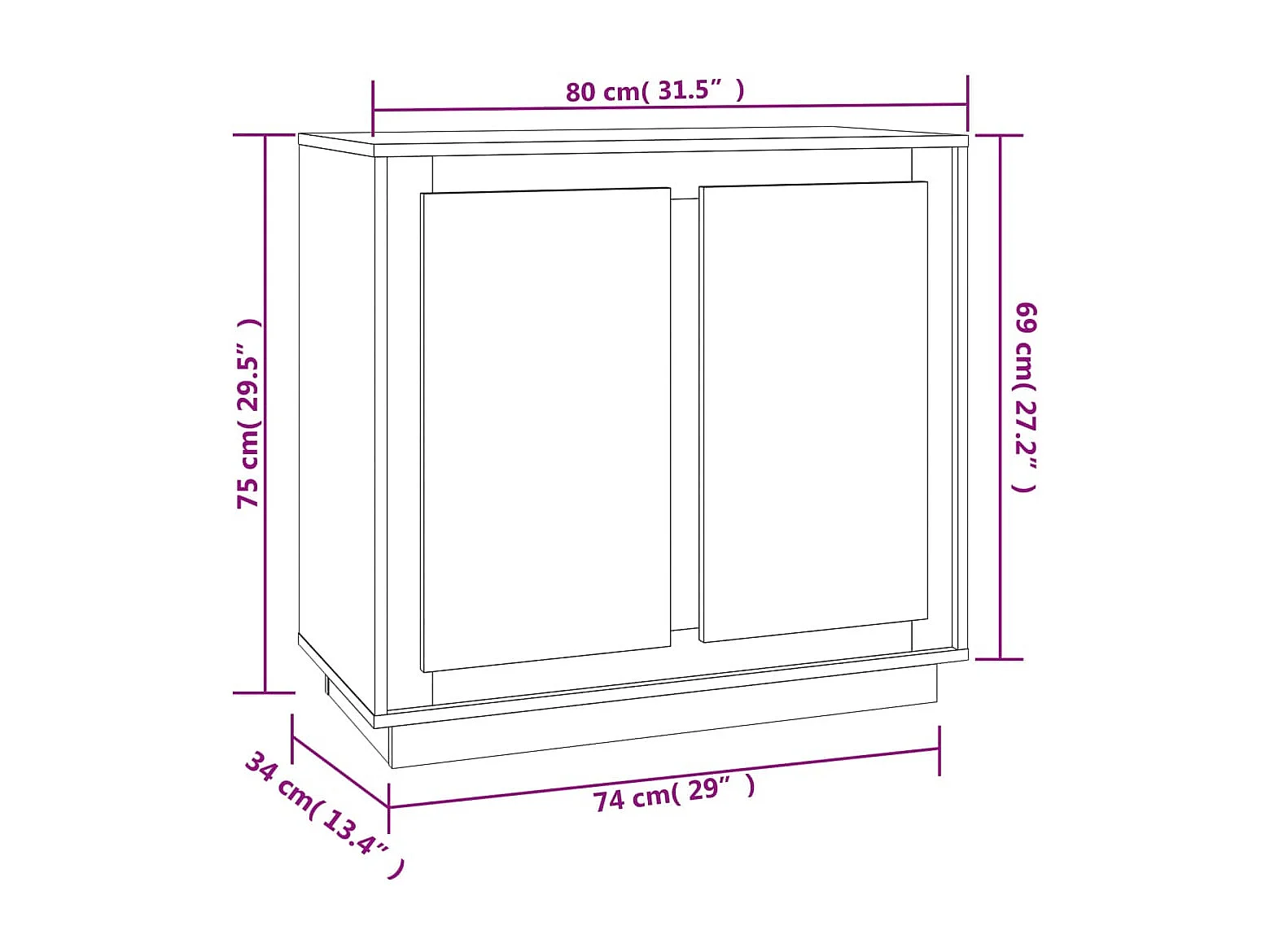 Aparador 2 uds madera maciza de pino 31,5x34x75 cm