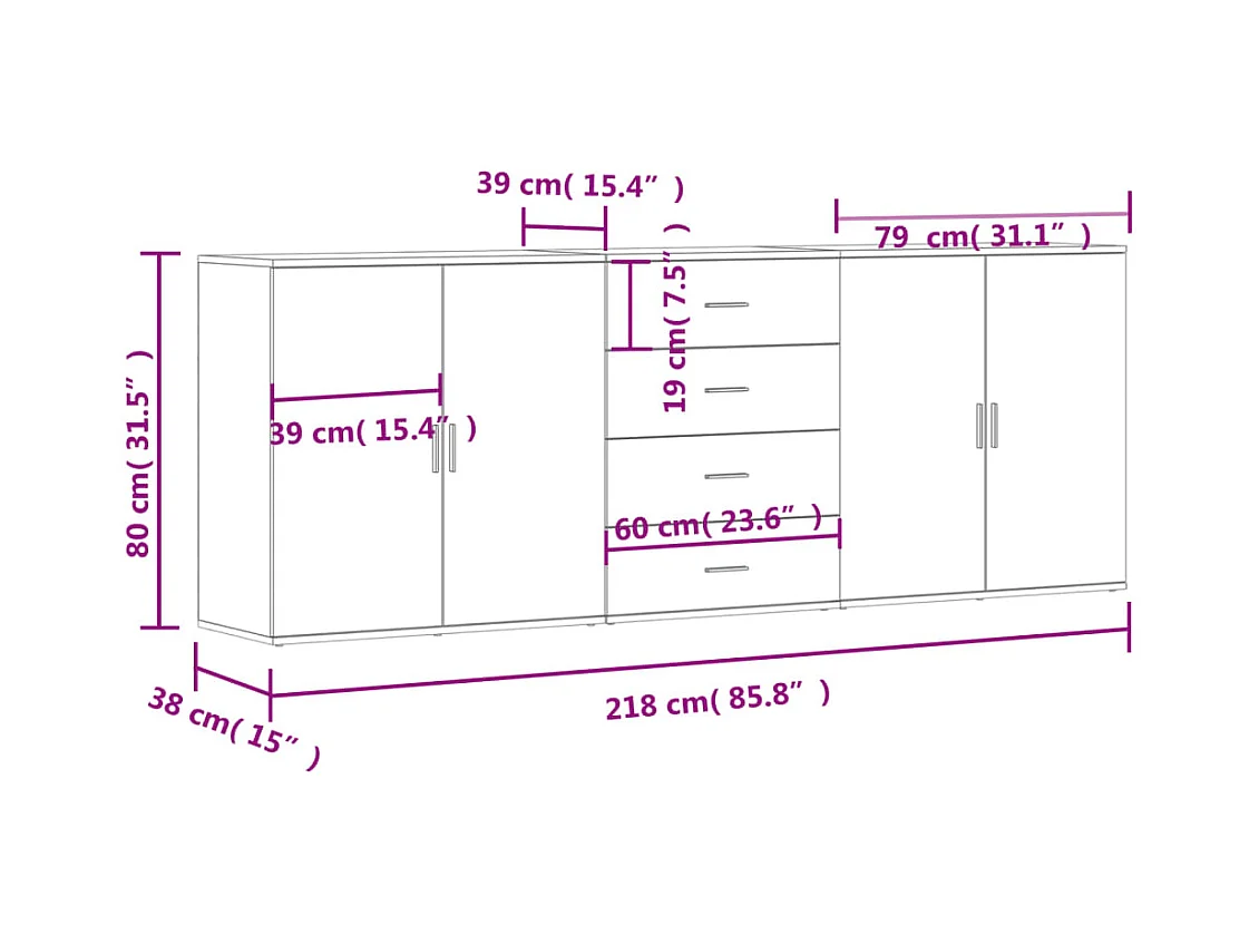 Aparadores 3 uds madera contrachapada color roble sonoma