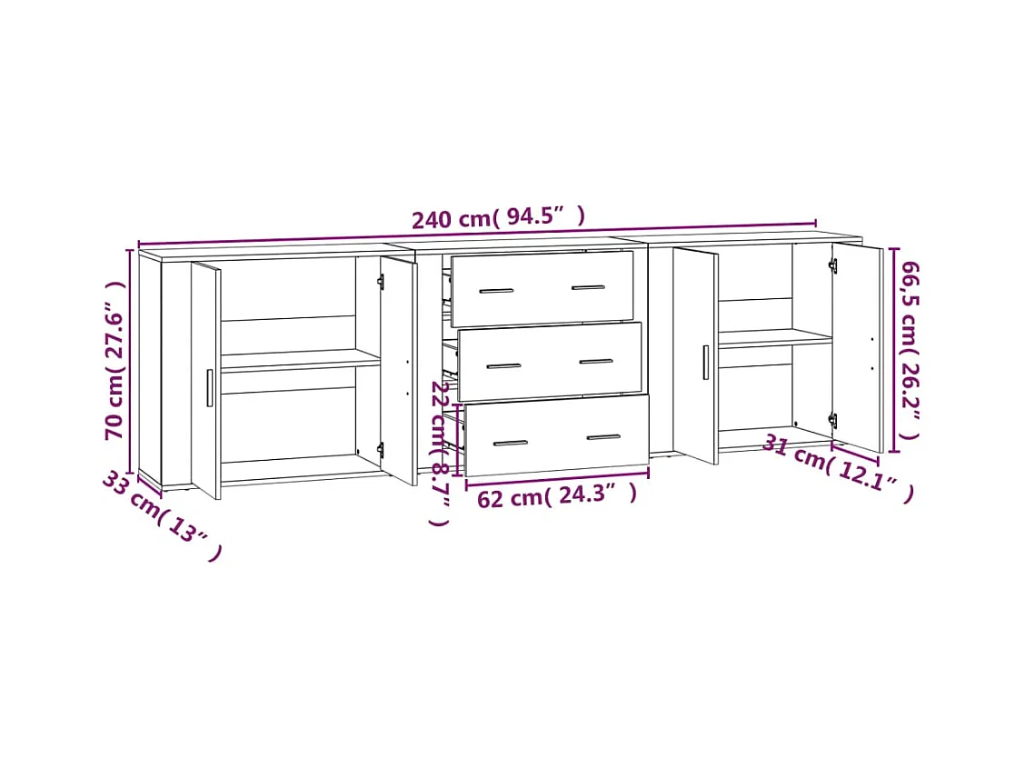 Aparadores 3 piezas madera contrachapada blanco ES41207