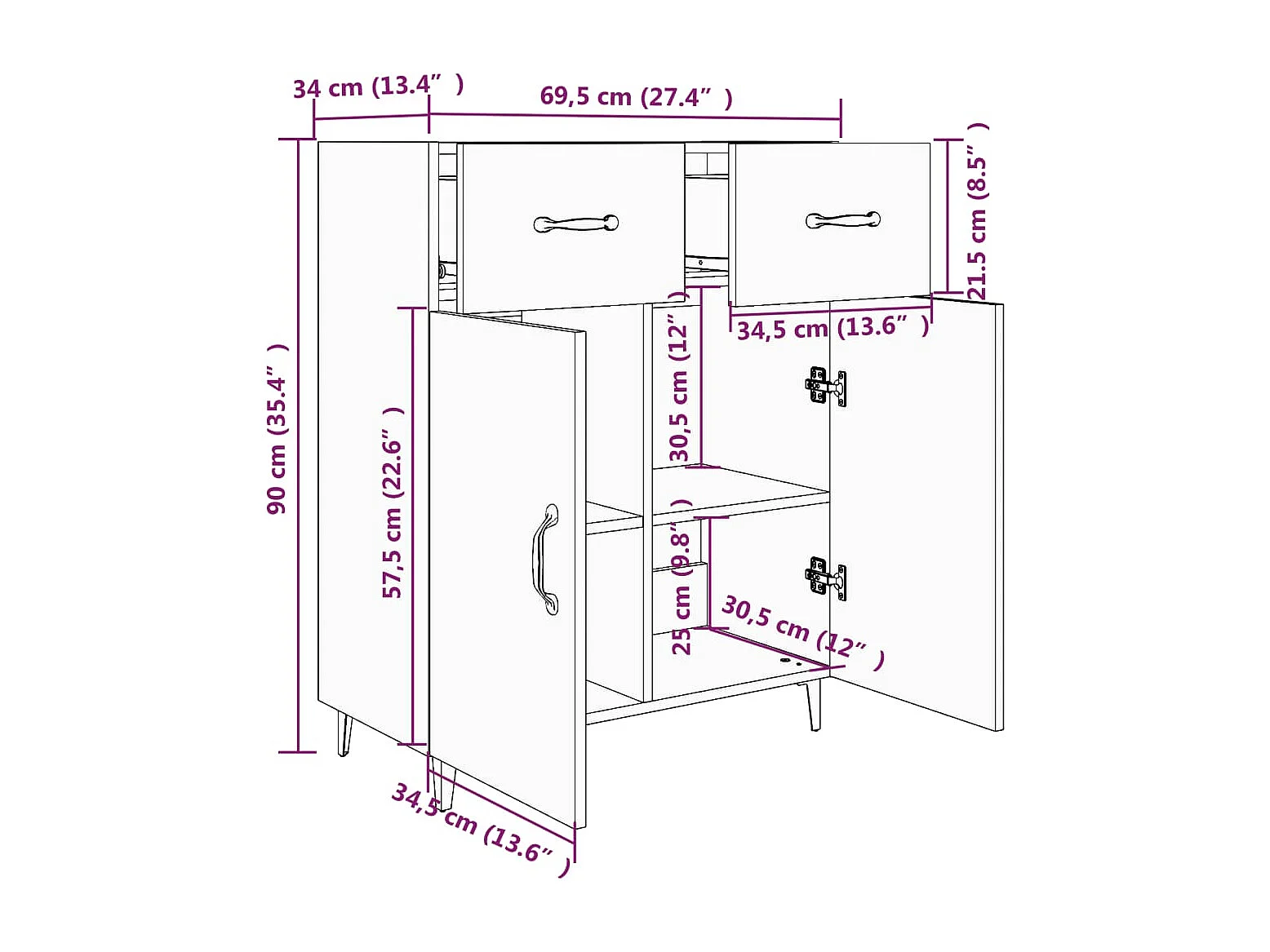 Aparador buffet cómoda mueble almacenaje organizador cocina salón salón 69,5 x 34 x 90 cm madera contrachapada marrón 02_0031012