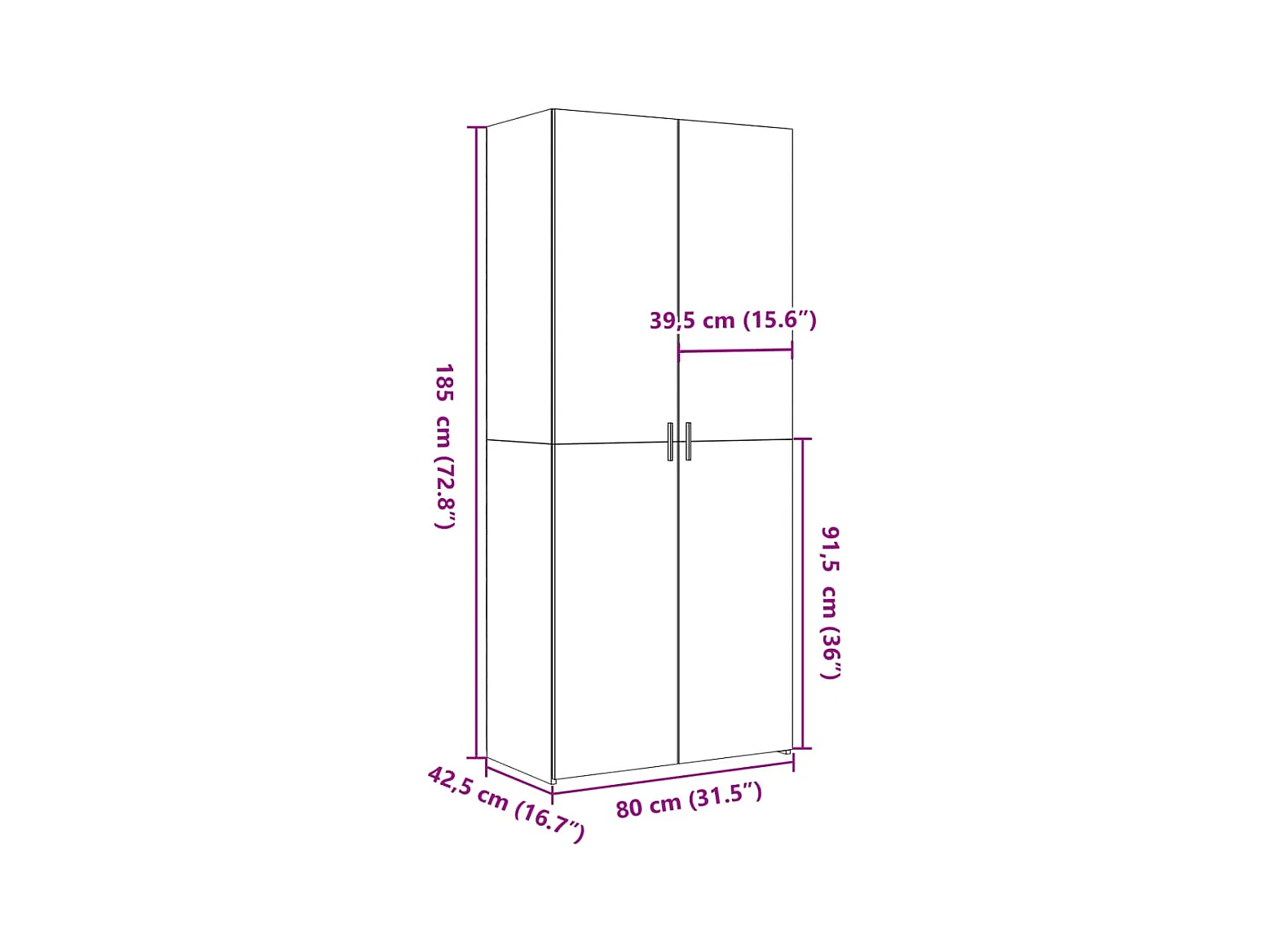 Aparador cómoda cómoda armario mueble organizador cocina salón salón alto Sonoma 80 x 42,5 x 185 cm madera contrachapada gris 02_0035635
