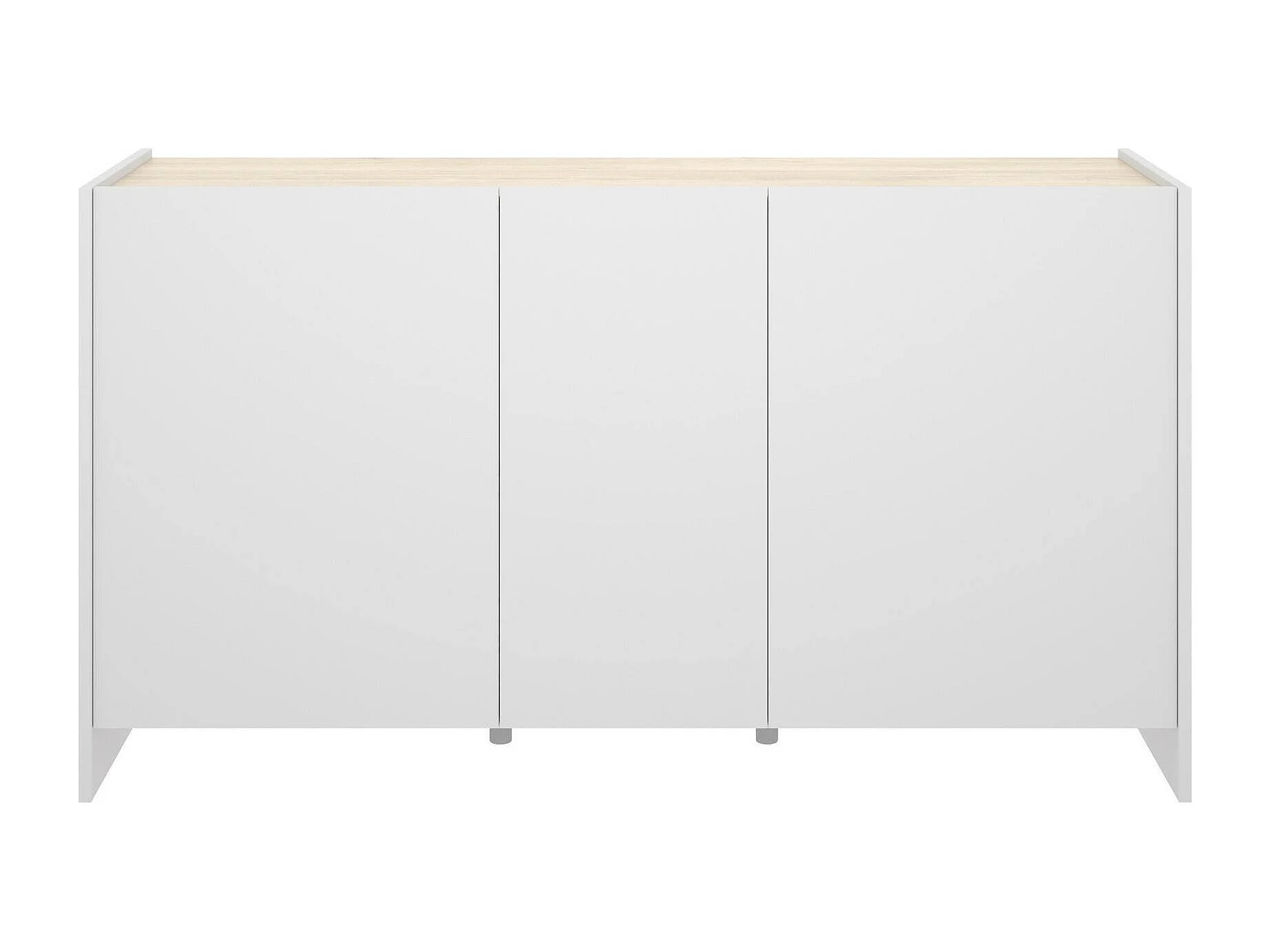 Aparador Calino, Buffet para salón, Aparador moderno para salón con 3 puertas, 138x42h76 cm, Blanco y Roble