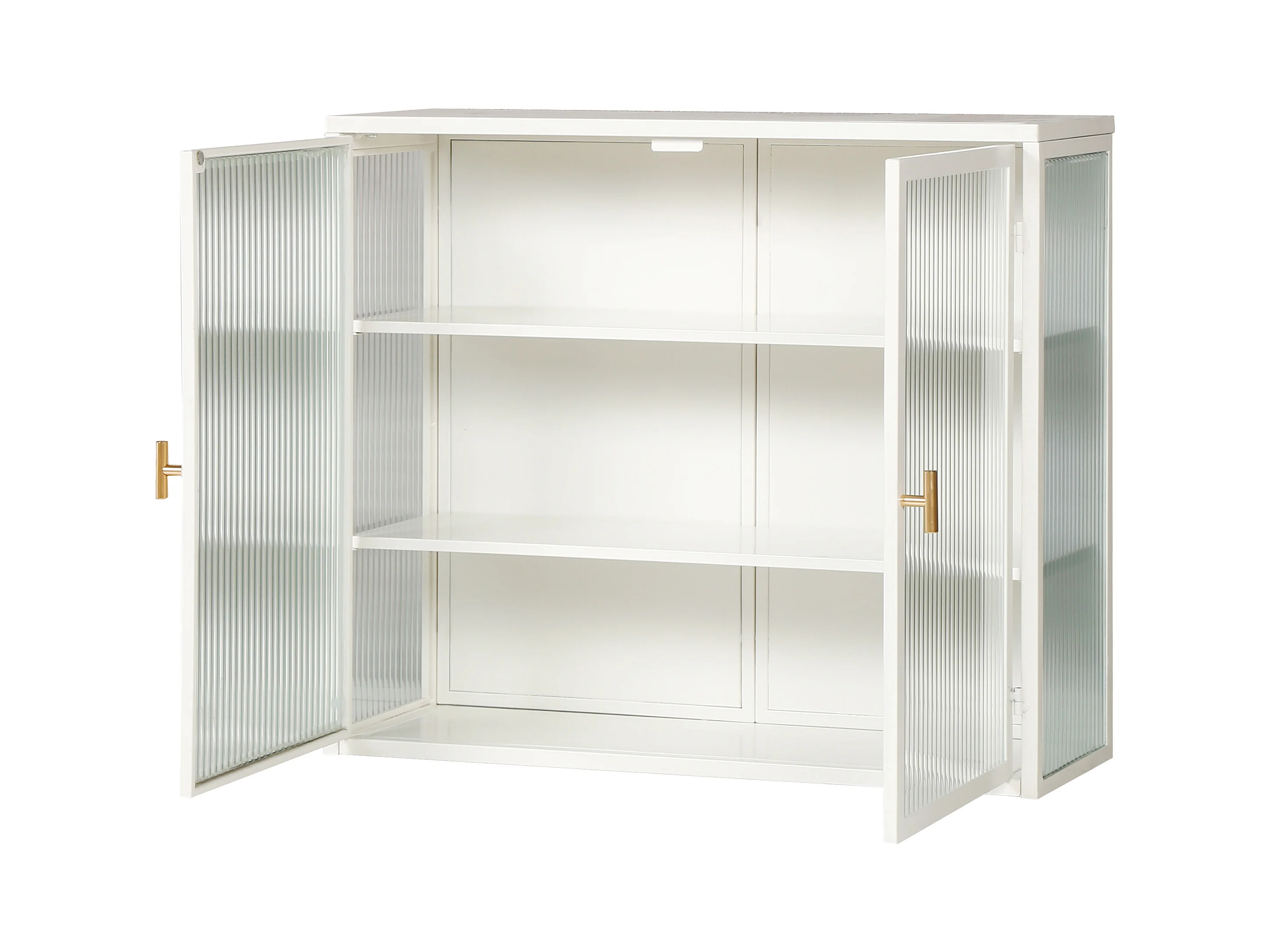 Mueble de pared de metal y cristal templado con estante de diseño para baño blanco 60x23x78cm
