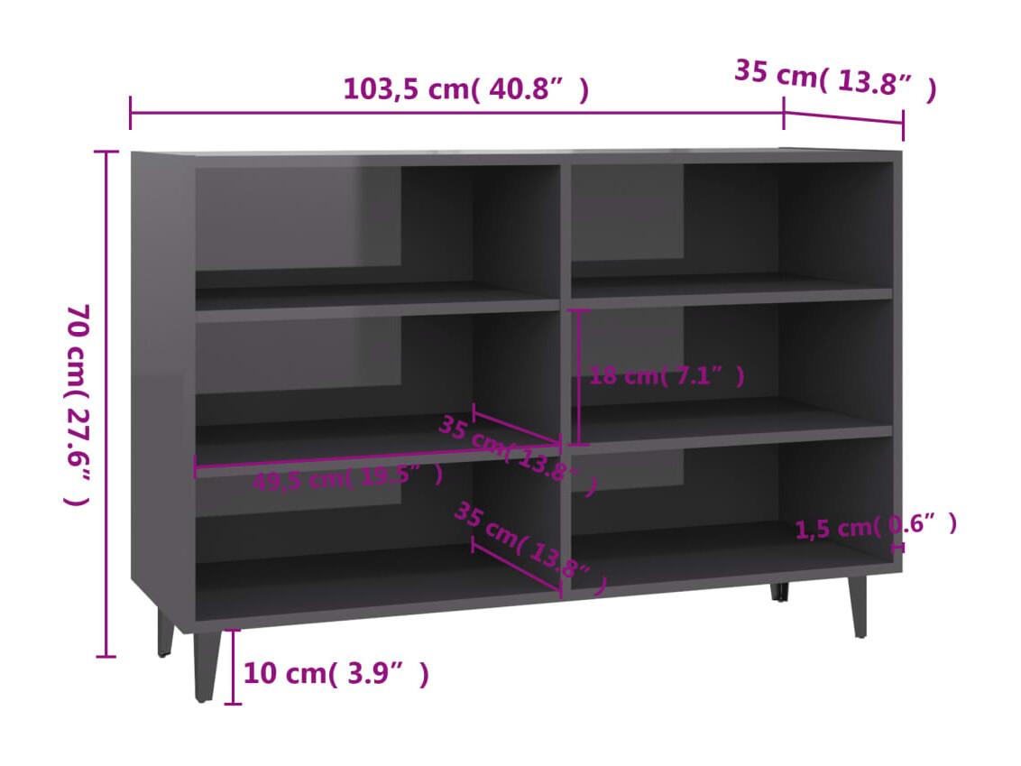 Aparador cómoda cómoda armario mueble organizador cocina salón brillante 103,5 x 35 x 70 cm madera contrachapada gris 02_0031813