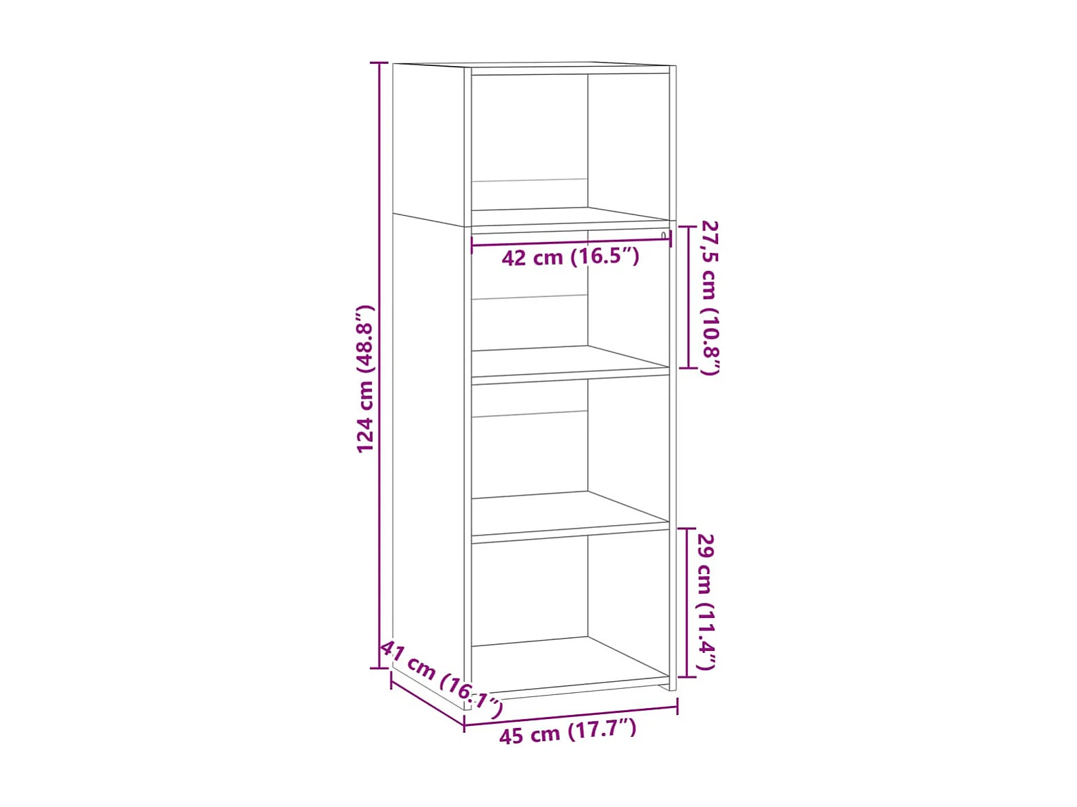 Aparador cómoda cómoda armario mueble organizador cocina salón salón alto 45 x 41 x 124 cm madera contrachapada marrón 02_0033359