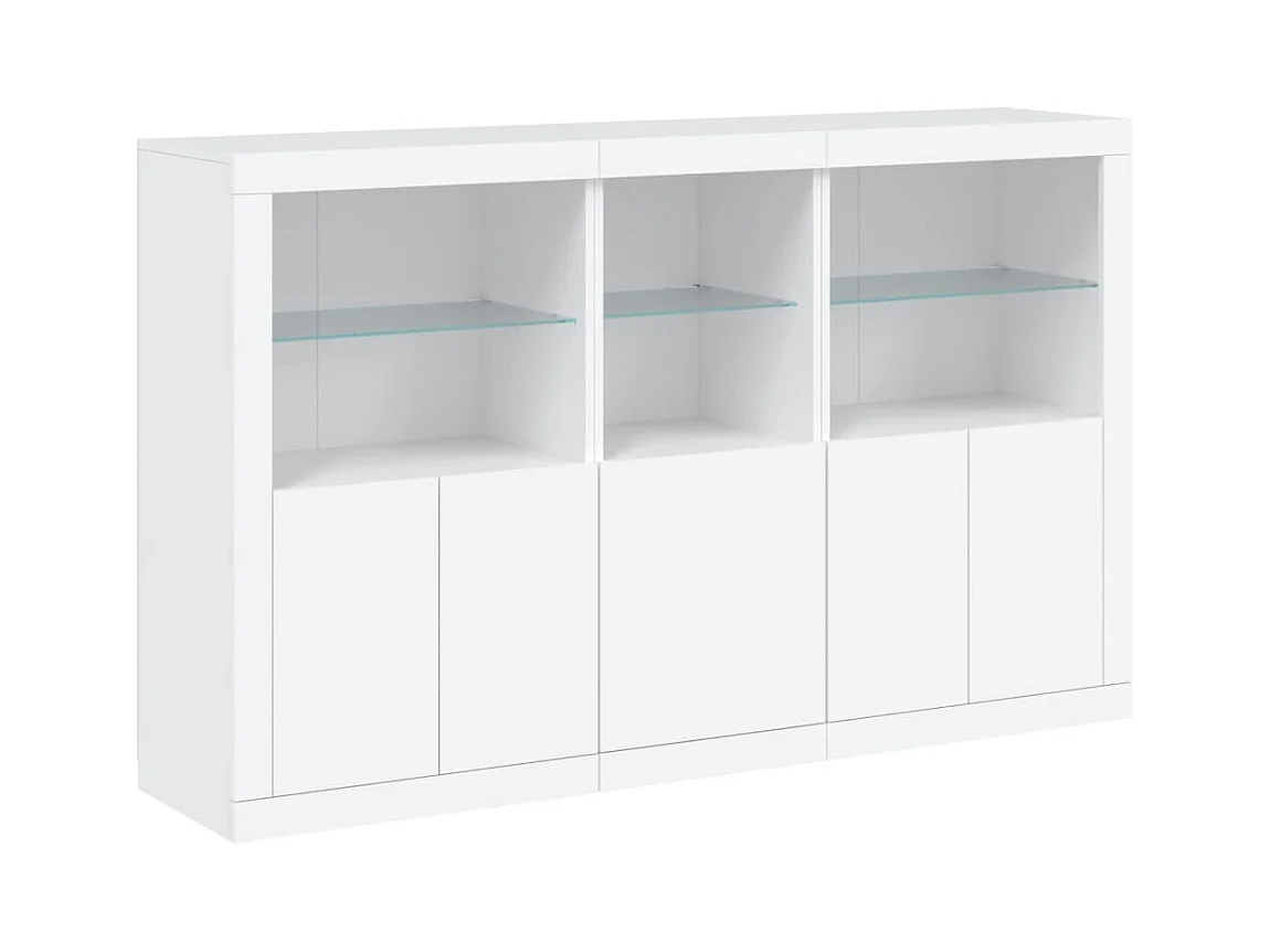 Aparador Aparador Cómoda Gabinete Unidad de Almacenamiento Organizador Cocina Sala de Estar con Luces LED 3 Piezas Madera de Ingeniería Blanca 02_0037195
