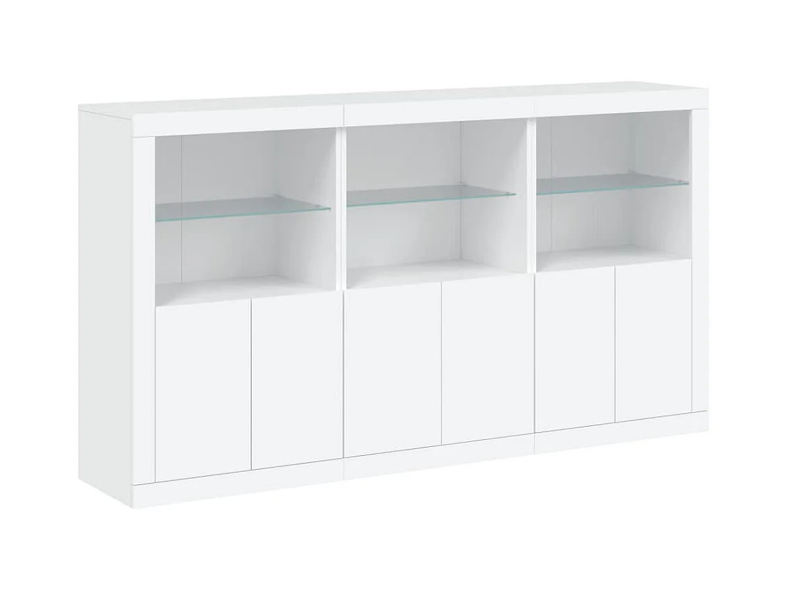 Aparador Aparador Cómoda Gabinete Unidad de Almacenamiento Organizador Cocina Sala de Estar con Luces LED 3 Piezas Madera de Ingeniería Blanca 02_0037198