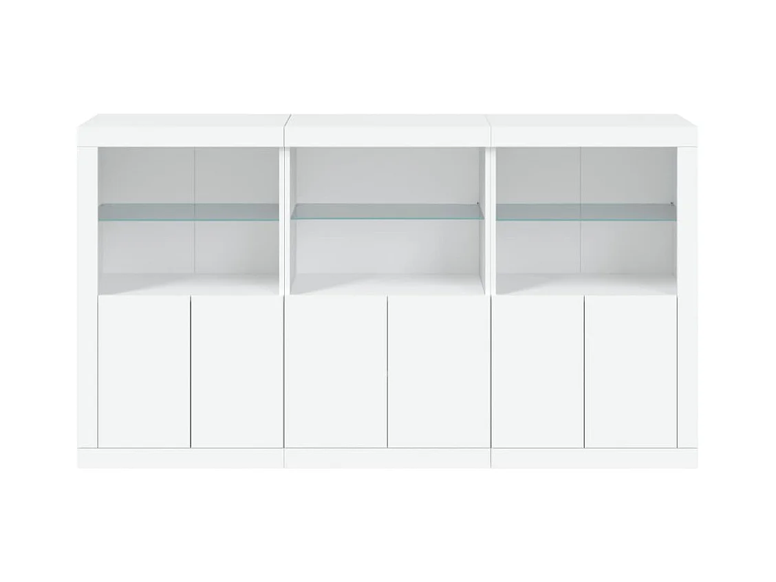 Aparador Aparador Cómoda Gabinete Unidad de Almacenamiento Organizador Cocina Sala de Estar con Luces LED 3 Piezas Madera de Ingeniería Blanca 02_0037195